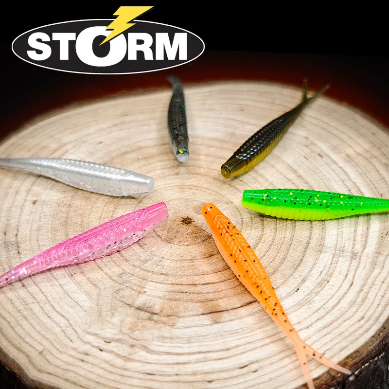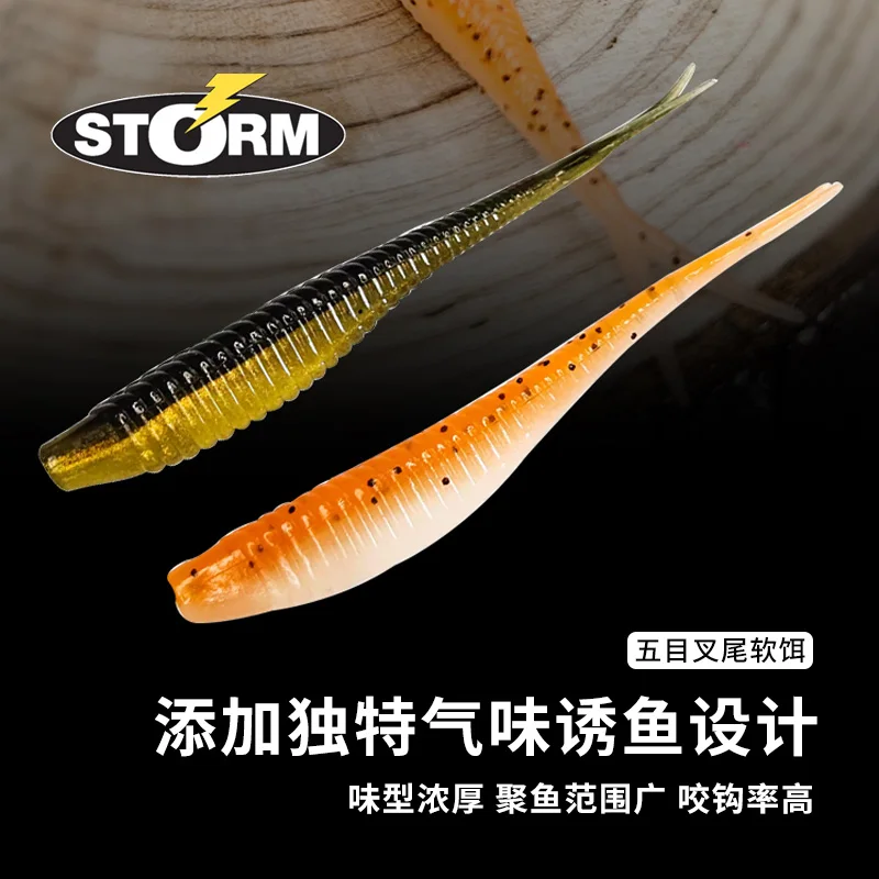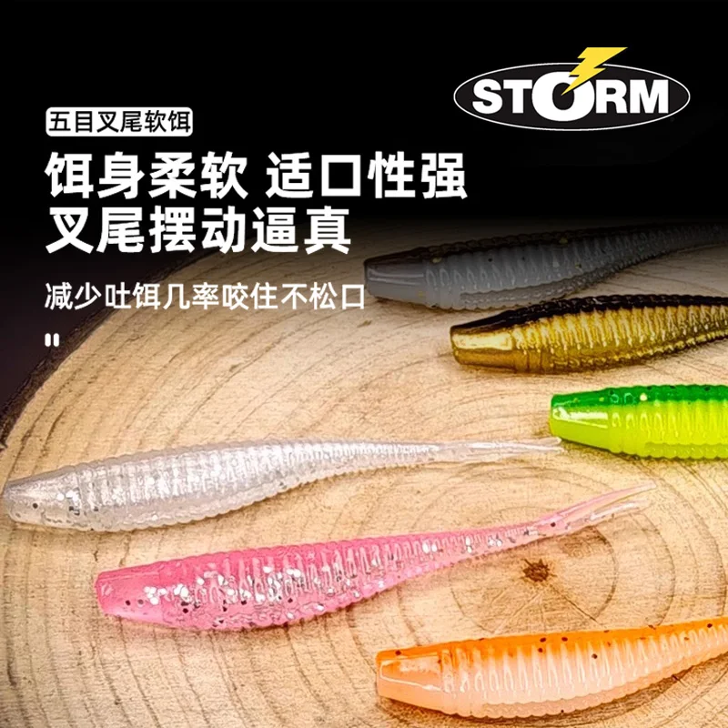 STORM Shizun-señuelo de cola de tenedor de cinco ojos, cebo suave GSBX, insecto suave, pozo negro, pesca salvaje, perca de mar, pez mangueira, pez mandarín