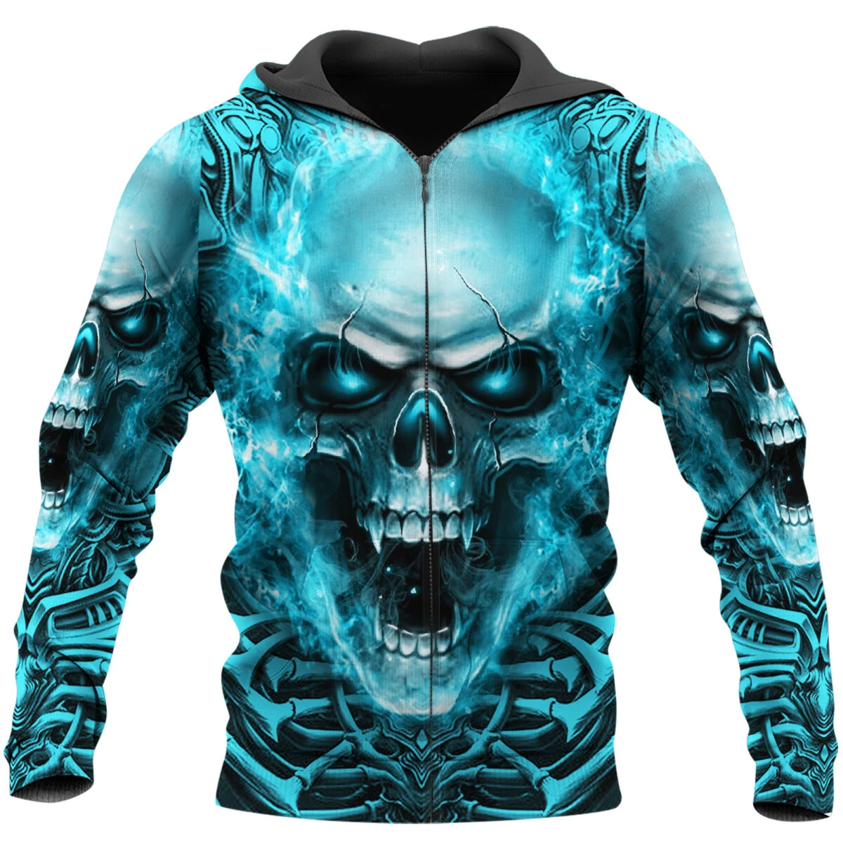 Sudadera con capucha de otoño para hombre con estampado 3D de calavera de terror de Halloween, ropa de calle Unisex, chaqueta informal con cremallera, jersey KJ655