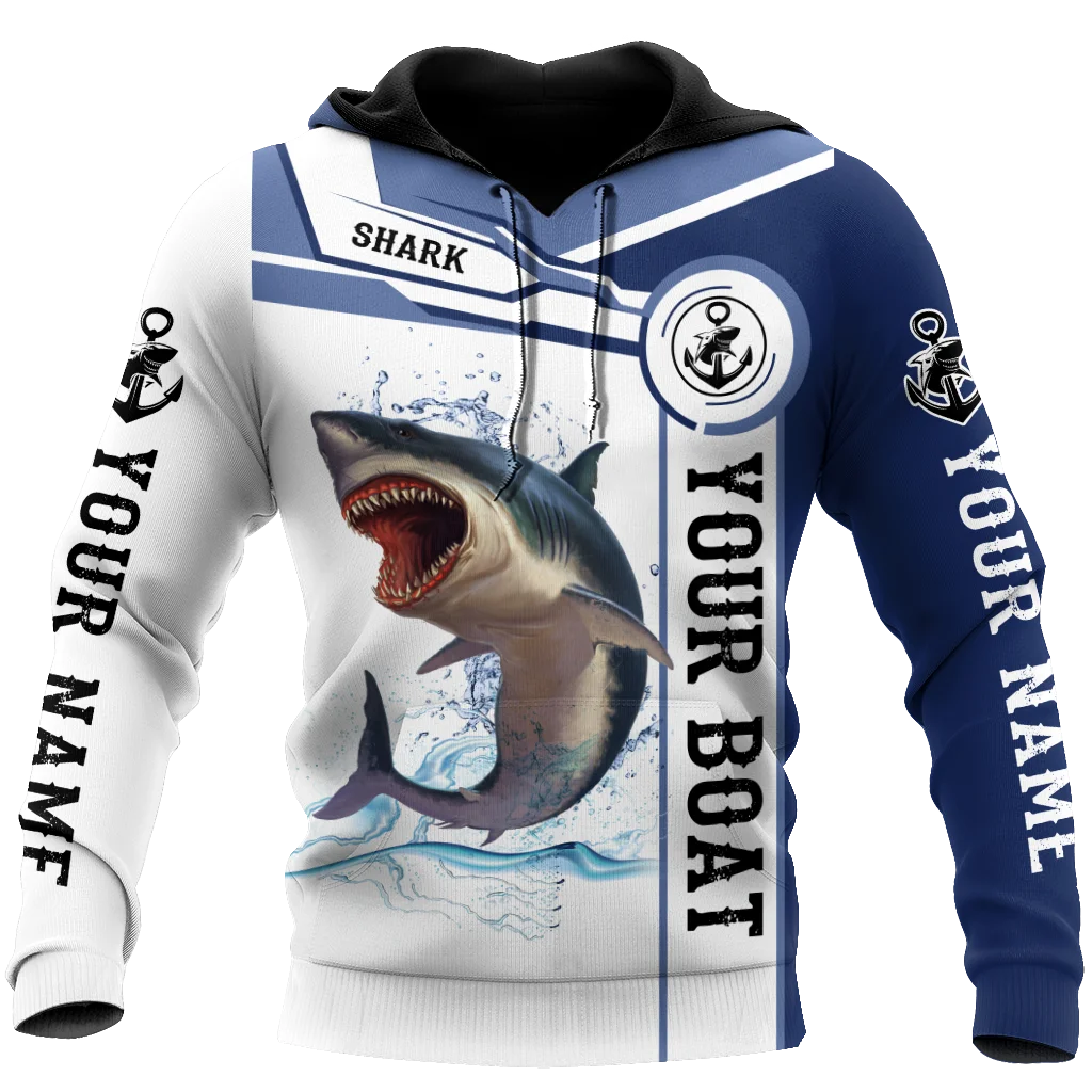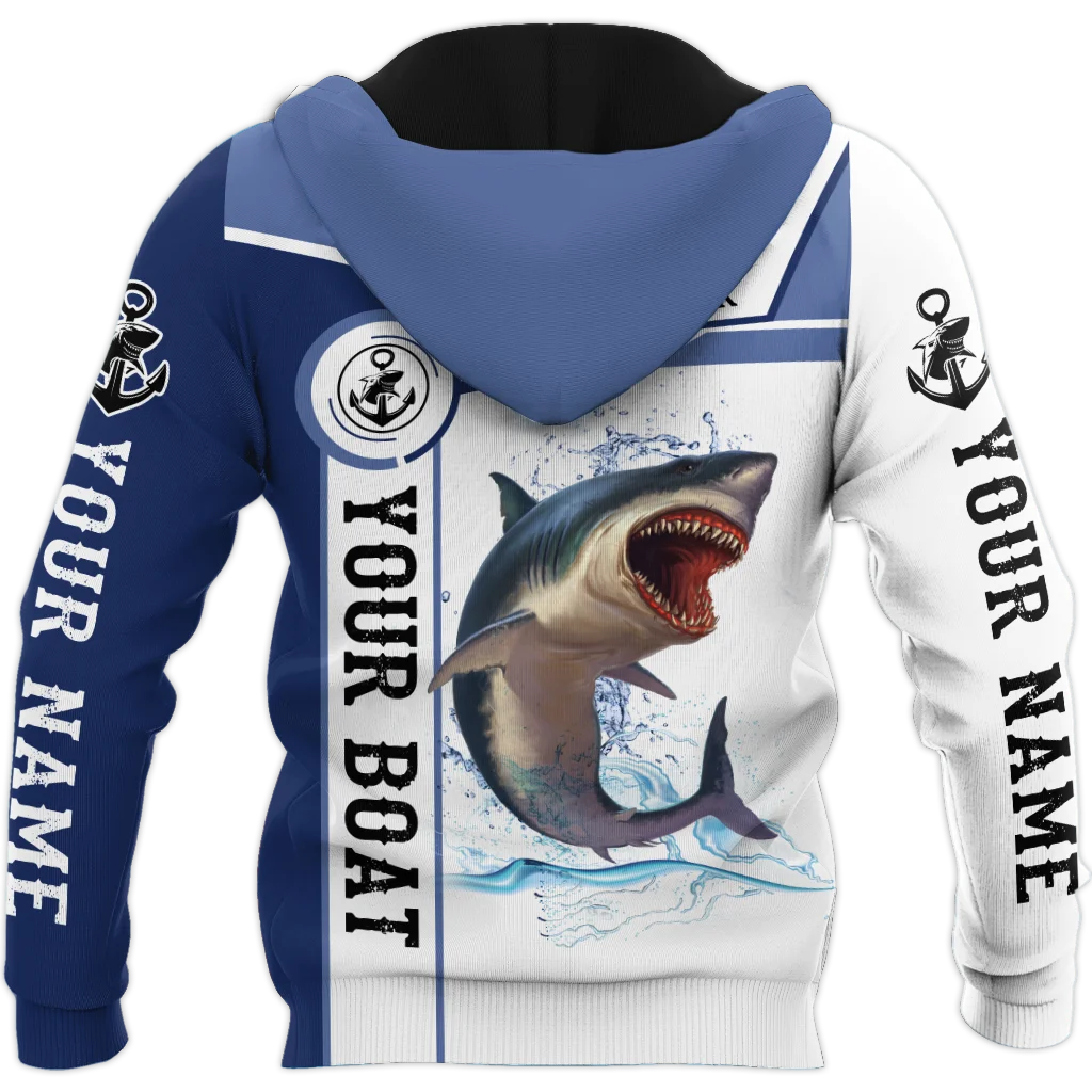 Sudadera con capucha y sudadera con estampado 3D de captura y lanzamiento de pesca de tiburones con nombre personalizado para hombre, Sudadera con capucha con cremallera Unisex de otoño, ropa deportiva informal KJ842 - imagen 1