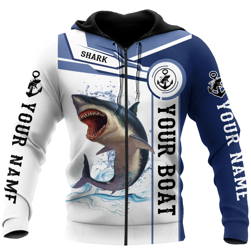 Sudadera con capucha y sudadera con estampado 3D de captura y lanzamiento de pesca de tiburones con nombre personalizado para hombre, Sudadera con capucha con cremallera Unisex de otoño, ropa deportiva informal KJ842