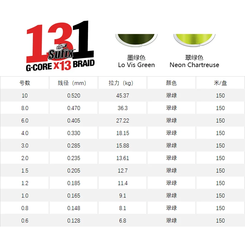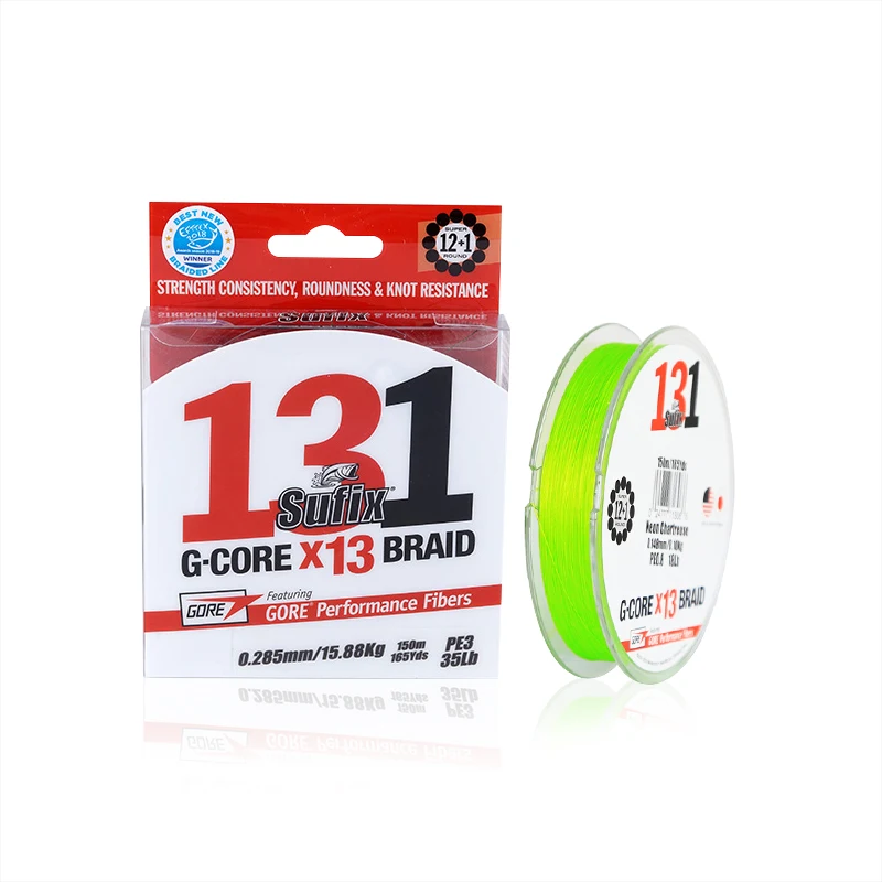 Sufijo®832®Superlínea avanzada®Es La trenza de diámetro pequeño más fuerte y duradera del mercado. El trenzado de precisión R8 y la tecnología de fibra proporcionan una resistencia, redondez y consistencia de línea superiores. La superlínea avanzada 832 tiene 8 fibras (7 fibras HMPE más 1 GORE®Fibra de rendimiento) y 32 tejidos (fotos) por pulgada. GORE de goma®Las fibras de rendimiento mejoran la resistencia a la abrasión, aumentan la distancia y precisión del lanzamiento y reducen la vibración de la línea. Las fibras HMPE proporcionan alta resistencia y sensibilidad, protección hidrófoba repelente al agua y diámetro pequeño.