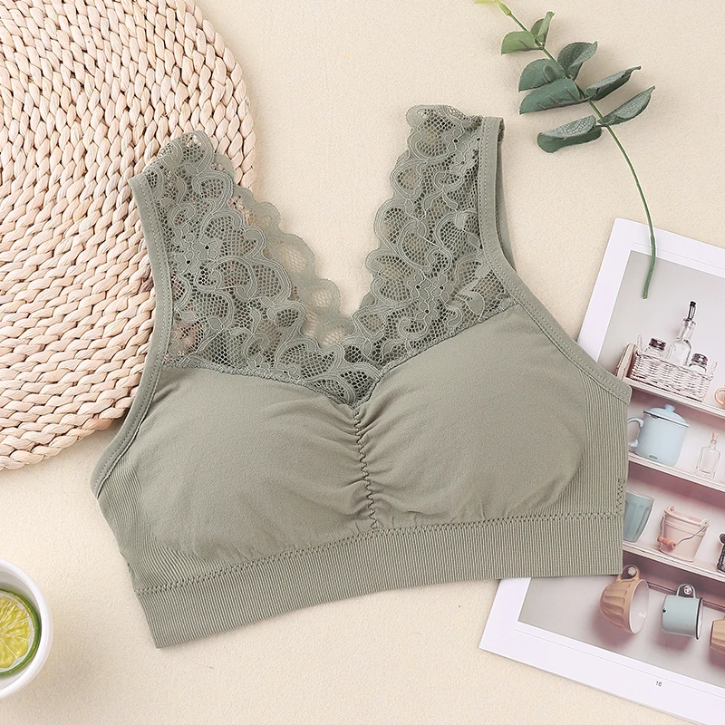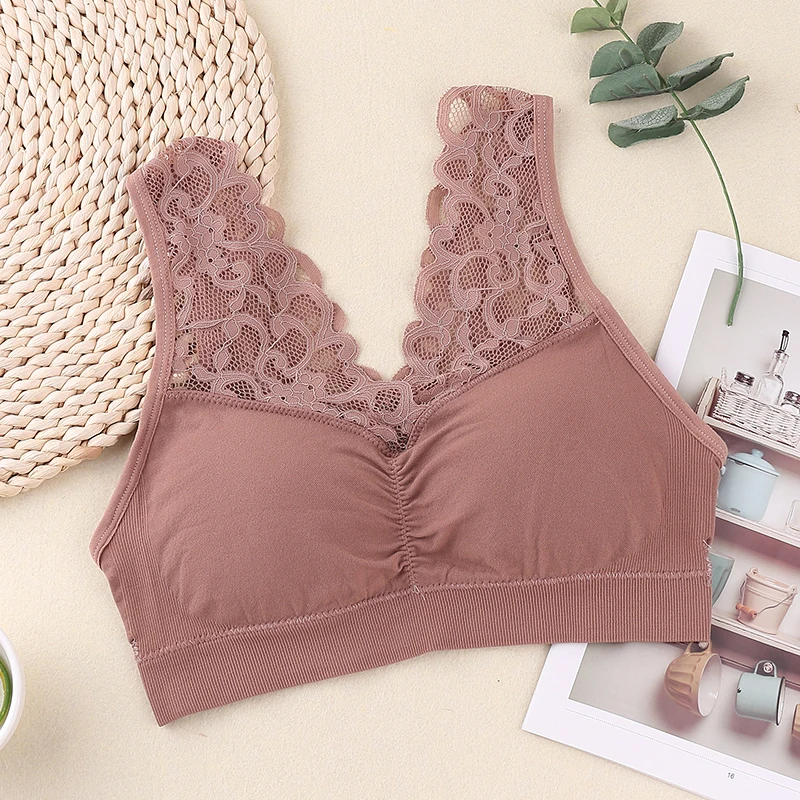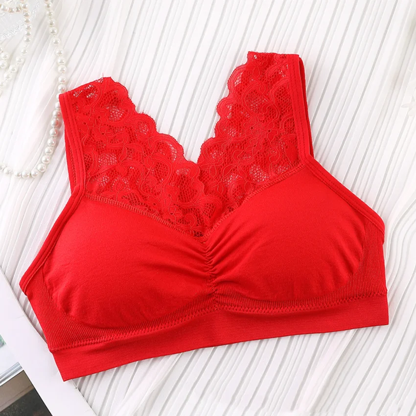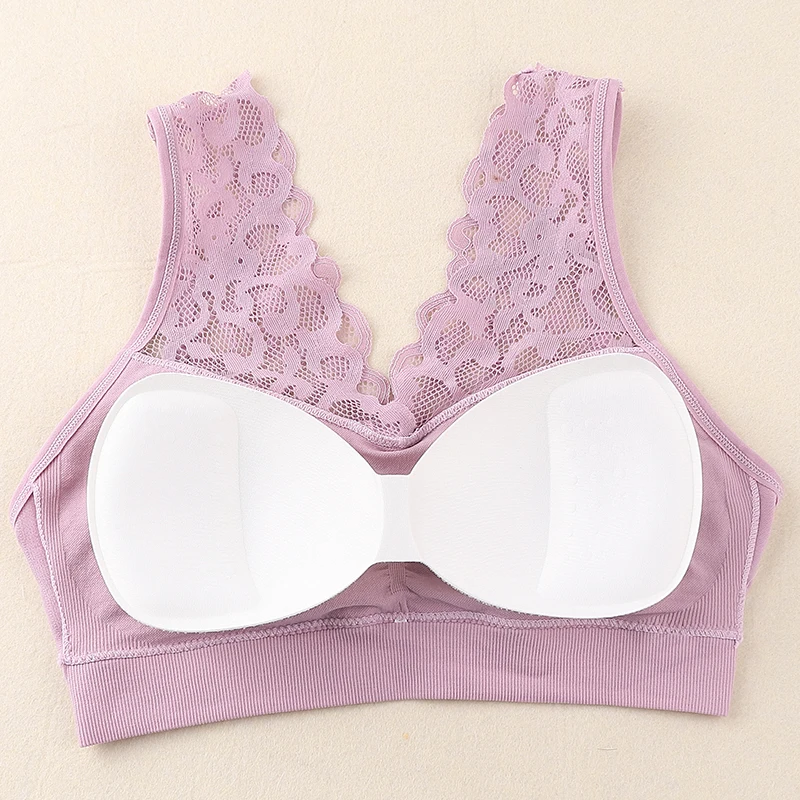 Sujetador deportivo de encaje de talla grande, sin costuras, espalda, alta elasticidad, Fitness, transpirable, Top deportivo, Fitness, acolchado, Yoga, gimnasio