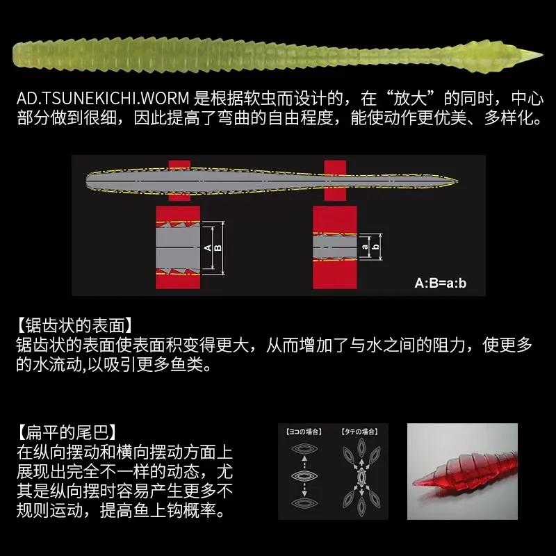 Sunekichi cola plana Angular, cebo subsuave AD, gusano de fideos, Neko, cabeza temblorosa colgante