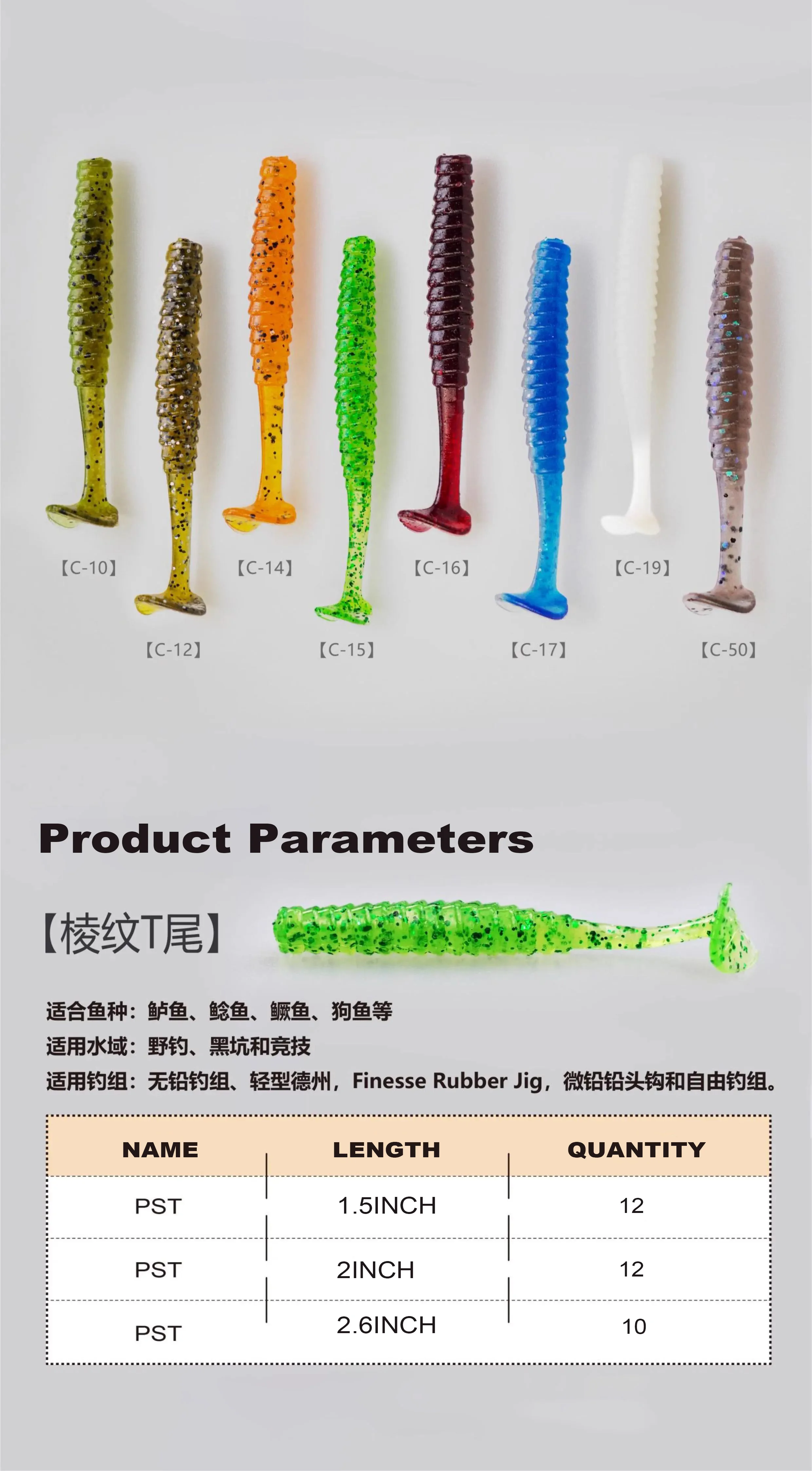 Sunekichi ISSEI Power Shad Tail PST 1,5/2/2.6 pulgadas 10-12 unids/lote/Paquete de cebo Artificial, cebo de pesca suave para Plantilla de goma fina