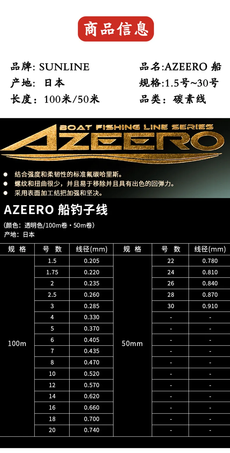 Sunline 23 nuevo AZEERO línea de pesca en barco de carbono 100m/50m señuelo línea de pesca frontal especial línea de pesca en el mar