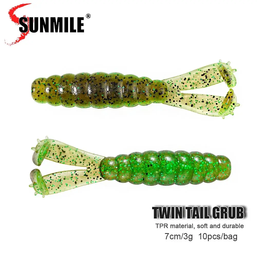 SUNMILE 10 Uds Diver Grub señuelo de pesca suave colas gemelas saladas TPR 10X cebo de gusano suave resistente silicona Wobbler Leurre