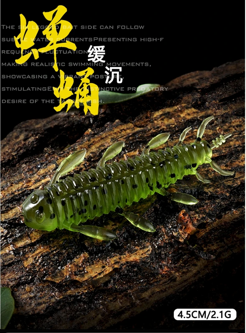 Un simple pero explosivo cebo blando de pupa de cigarra de seis patas. El lado del cebo de seis patas puede seguir las sutiles corrientes de agua