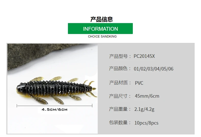La pupa de cigarra de seis patas está hecha de material de PVC de alta calidad, con alta suavidad y buena palatabilidad. Es un tipo de
