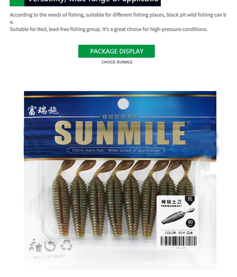 El cebo para patatas con martillo en barra utiliza material de PVC de alta calidad, que tiene alta