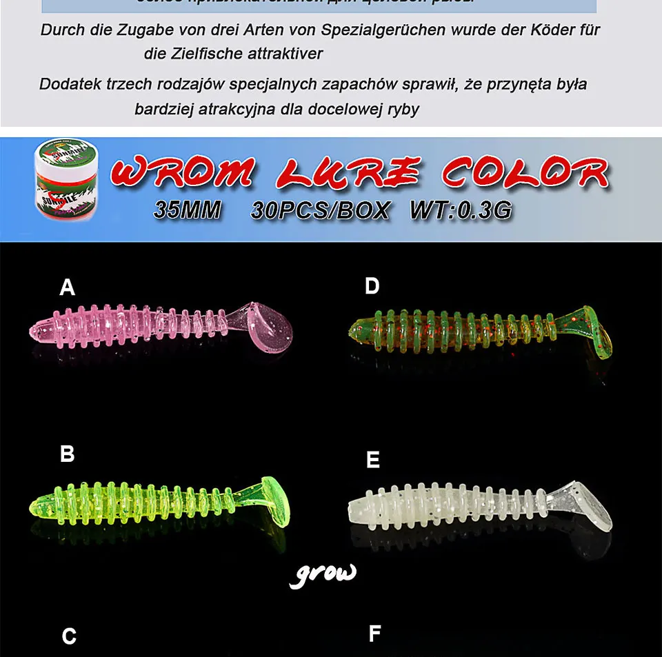 El material TPR especialmente súper elástico con dos opciones de aromas hace que capturen peces perfectamente.