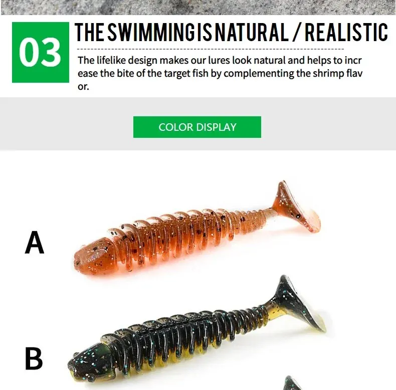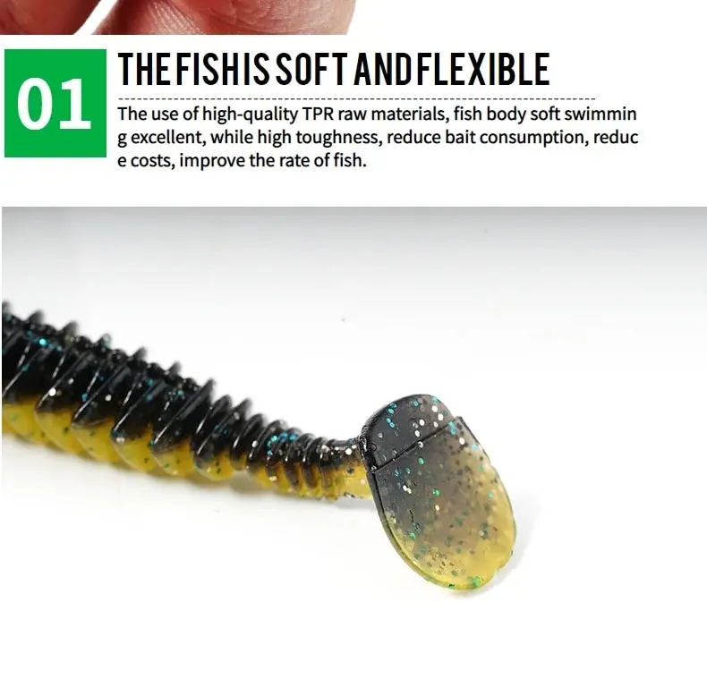 1.Utilice materiales TPR flotantes y respetuosos con el medio ambiente.Este material es duradero, portátil y reduce en gran medida la pérdida de cebo blando.