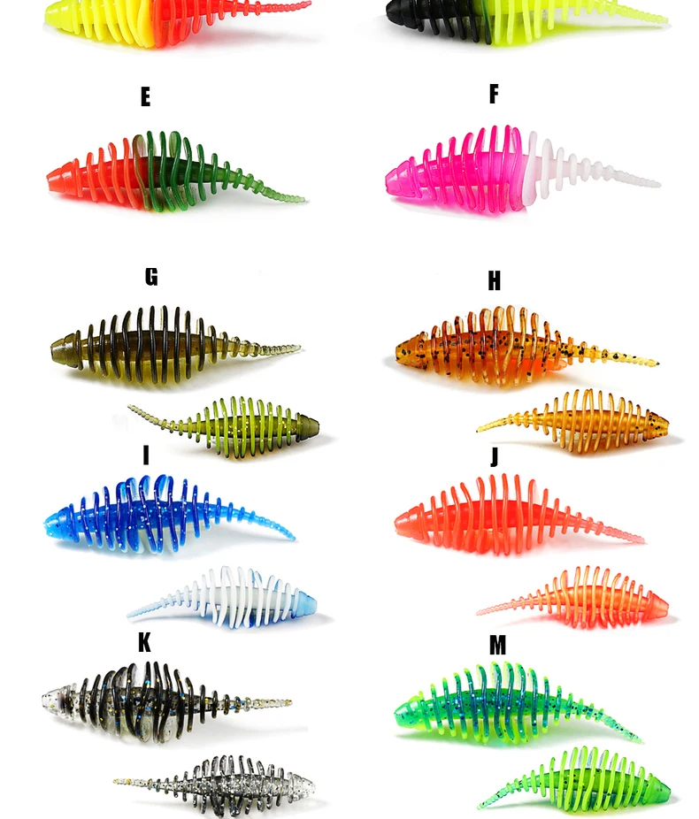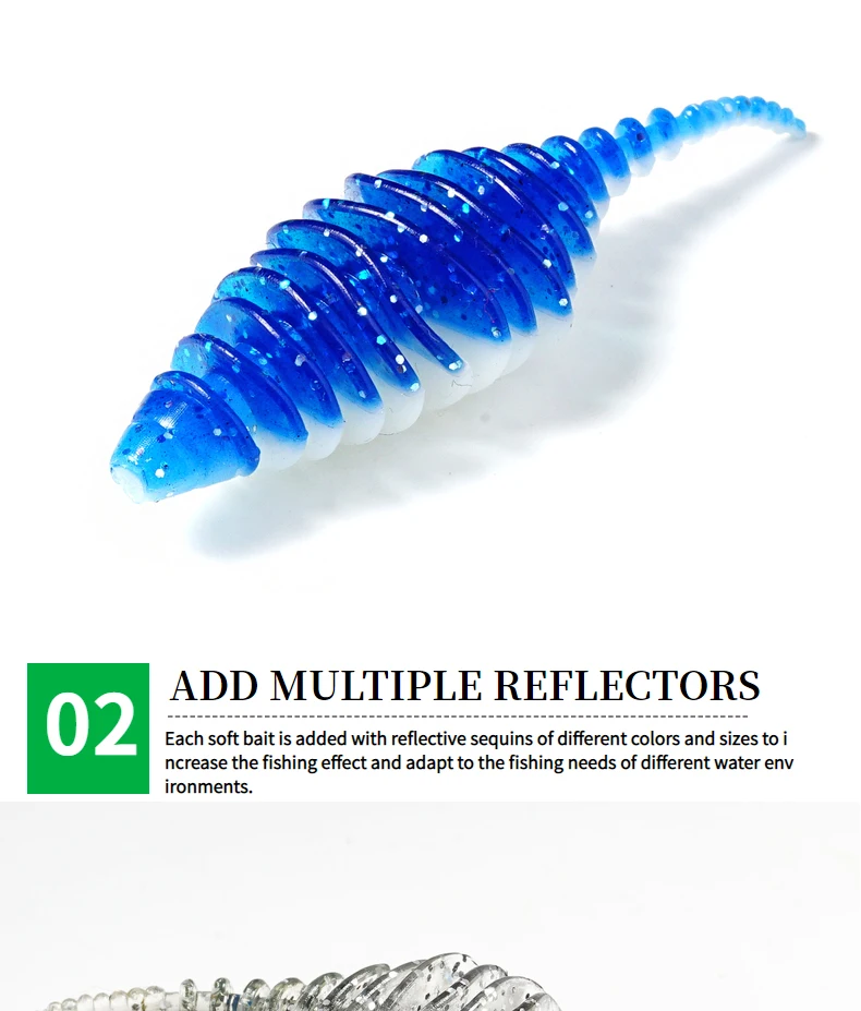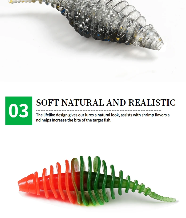 El material TPR especialmente súper elástico con dos opciones de aromas hace que capturen peces perfectamente.