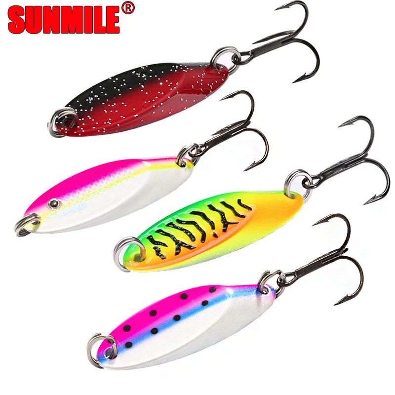 1.Suitable for fishing bass,trout,Pike,salmon,catfish,walleye,perch,etc 2.VMC black nickel hooks are extremely sharp for excellent penetration 3.SUNMILE spoon lure is machined from solid brass,It won't break, bend or corrode . 4.SUPERB PAINTING PROCESS for maximum flash and corrosion resistance strengthening the lure's visibility 5.The color patterns create an APPEALING and NATURAL look,So that the fish could not help but to bite them. 6.GREAT GAG GIFT for any fisherman. Exquisite metal box packaging, easy to carry.