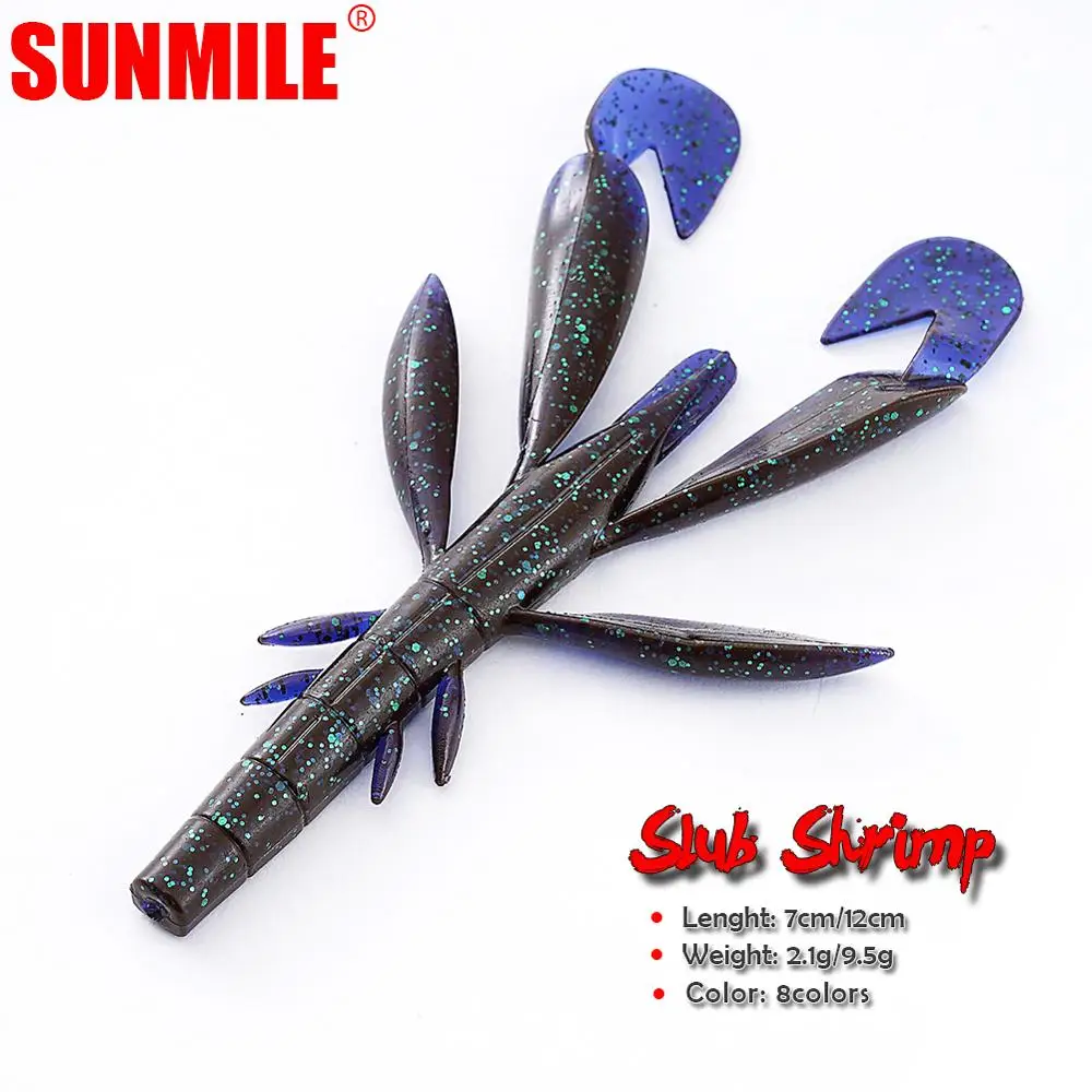 SUNMILE-SEÑUELOS blandos de camarón Slub, cebos artificiales Crankbait Iscas, cebos artificiales Leurre Louple para pesca de lubina, 7cm/12cm