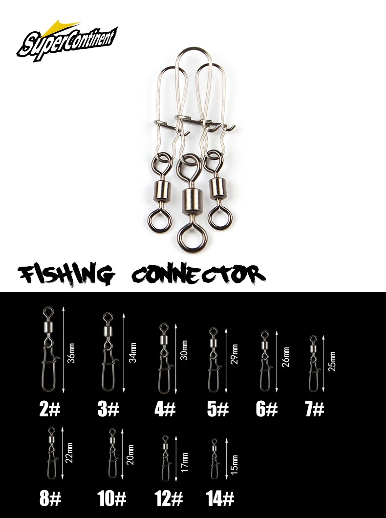 Supercontinent 50 Uds accesorios de pesca de Lucio conector Pin rodamiento giratorio de acero inoxidable señuelo de anzuelo a presión