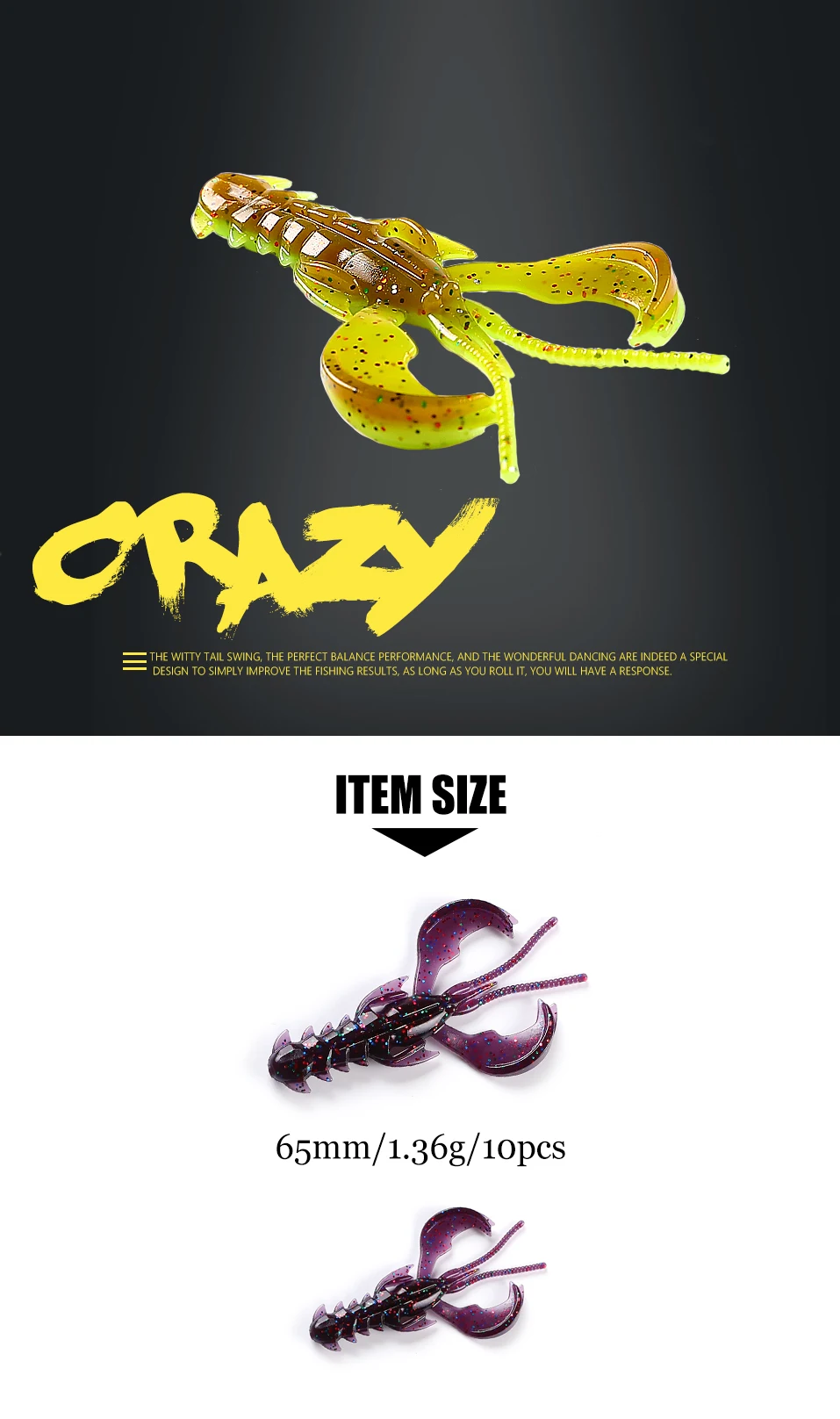Supercontinent CRAZY-señuelo suave de langosta, Señuelos de Pesca, atractivo olor a Camarón, Wobbler de sal, 65mm/40mm