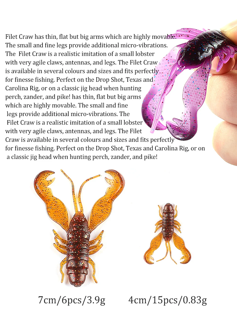 Supercontinent Filet Craw 40mm/15 Uds 70mm/6 uds señuelo suave Señuelos de Pesca camarón langosta señuelo de plástico suave Señuelos de Pesca