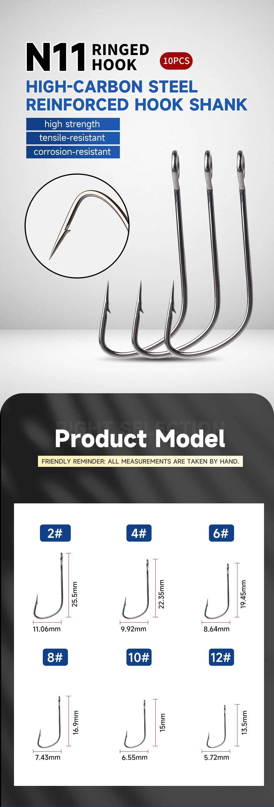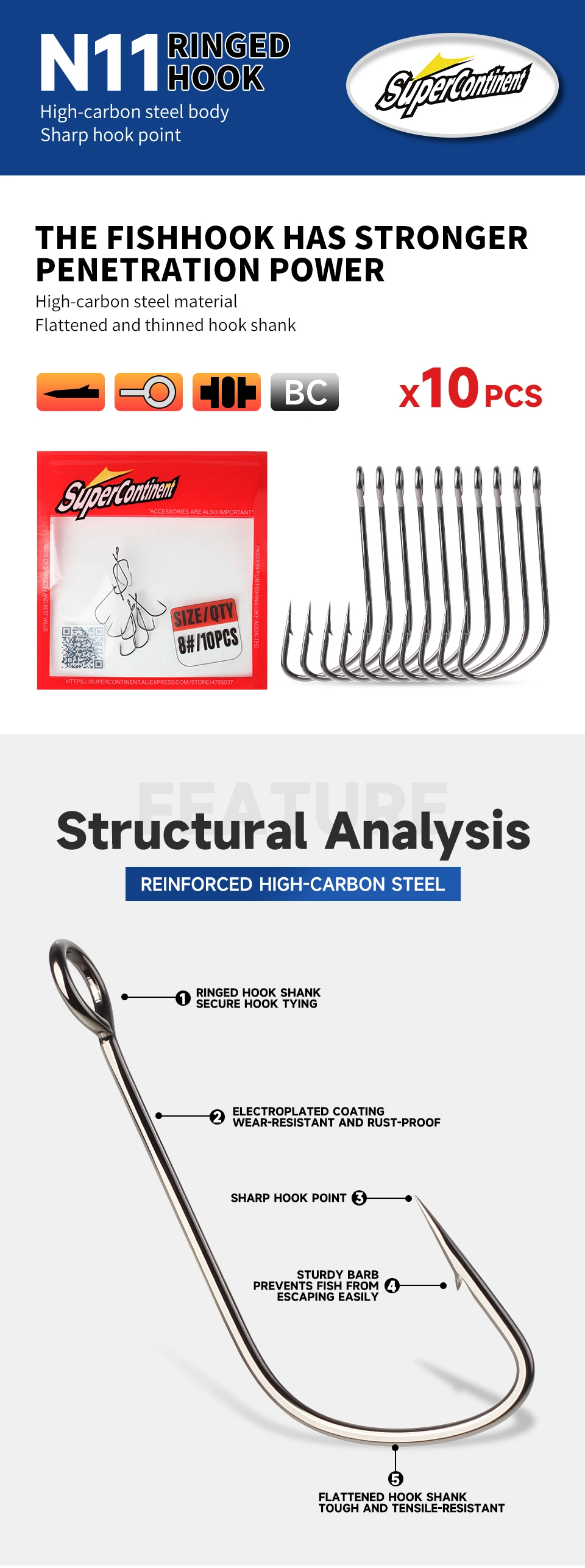 Supercontinente 2 # -12 # 10 Uds gancho de púas anzuelo de pesca anillo grande anzuelos individuales aparejos anzuelos de gusano con anillo de ojos grandes