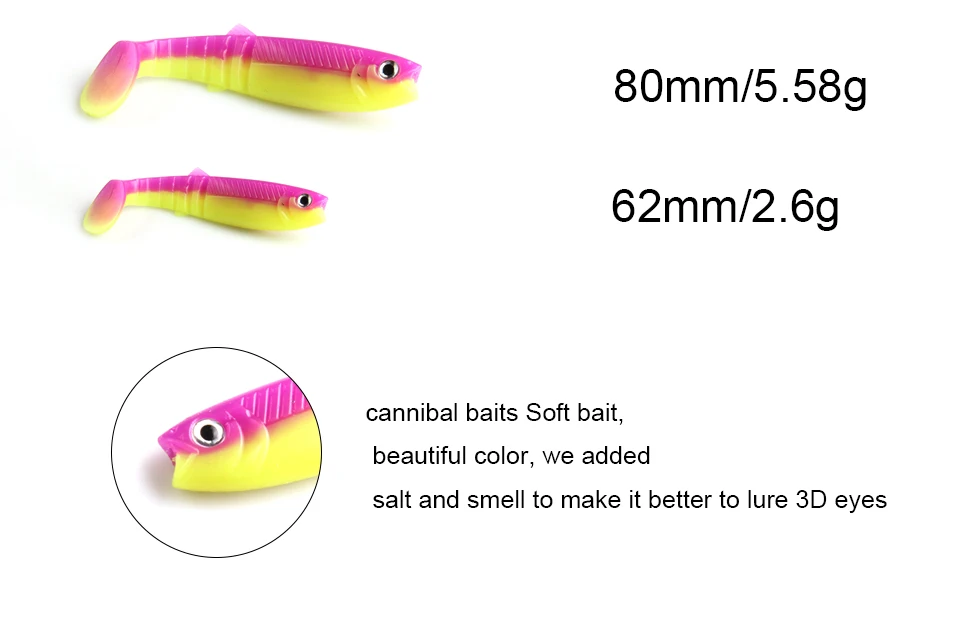 Supercontinente, nuevos cebos caníbales, color 3D, cebo bicolor con olor, 96mm/80mm/62mm, cola de pez de pesca