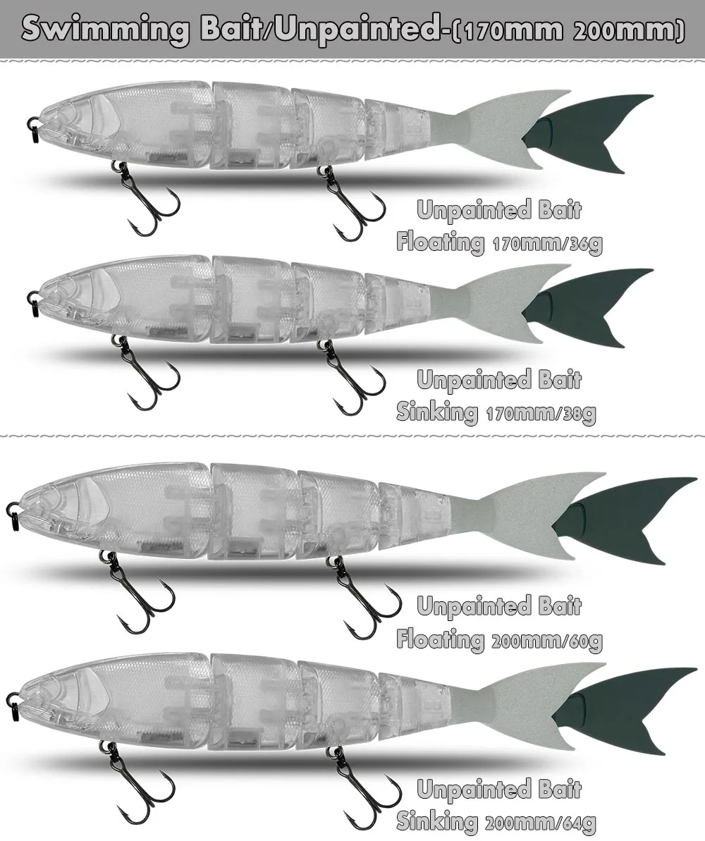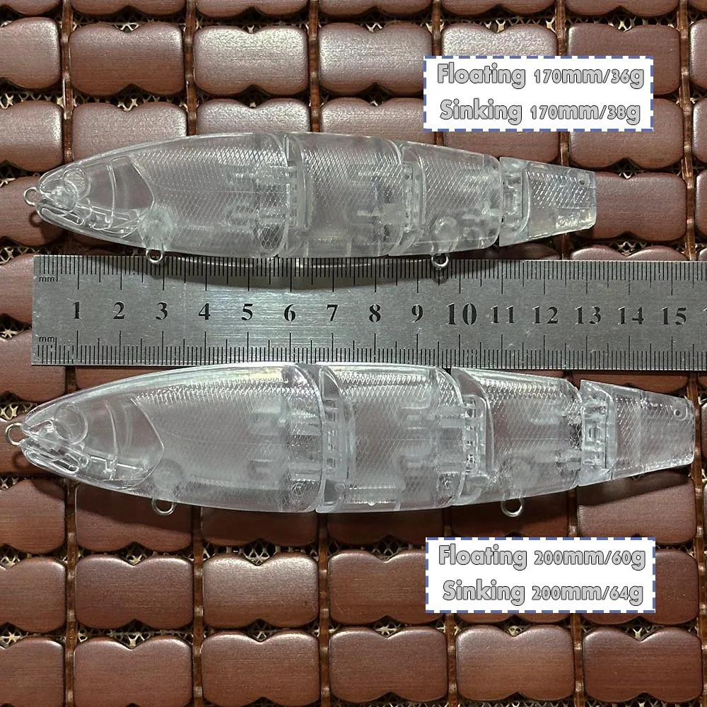Swimbait sin pintar, cebo articulado DIY, señuelo de pesca flotante/hundimiento de 170/200mm con cola suave, cebo duro Artificial de plástico ABS