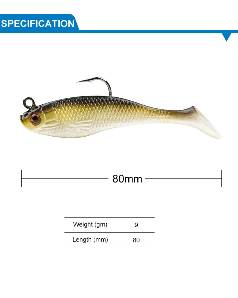 1 piezas Swimbait Jig 9g 80mm paleta de señuelo de cola de silicona cebo suave gusano rizado señuelo de gusano suave cebos de cola de círculo único señuelo de cola única Swimbaits kick Tail Dying.