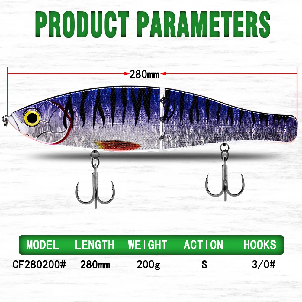 Swimbait-señuelo de pesca articulado, cebo de hundimiento lento, sección Topwater, lubina, 13 colores, 280mm, 200g, 1 unidad