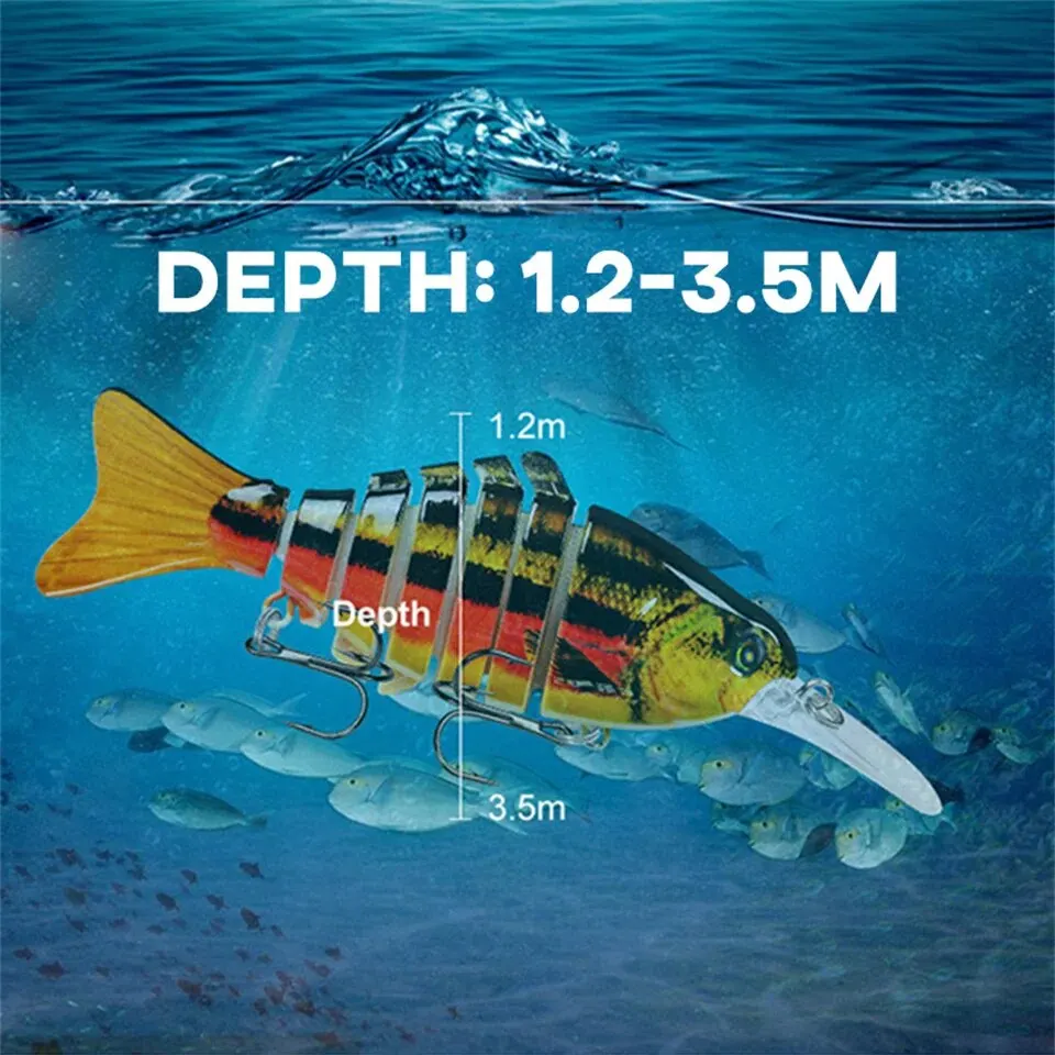 • Diseño articulado multi:El señuelo de pesca Multi Jointed Swimbaits presenta un diseño único con siete segmentos, imitando el movimiento de los peces reales, lo que aumenta las posibilidades de una captura exitosa.
