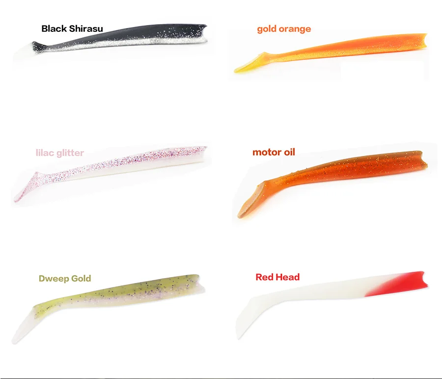 Brillo, polvo noctilucente y sabor disponibles.3).Acerca del uso de señuelos blandos de diferentes estilos.