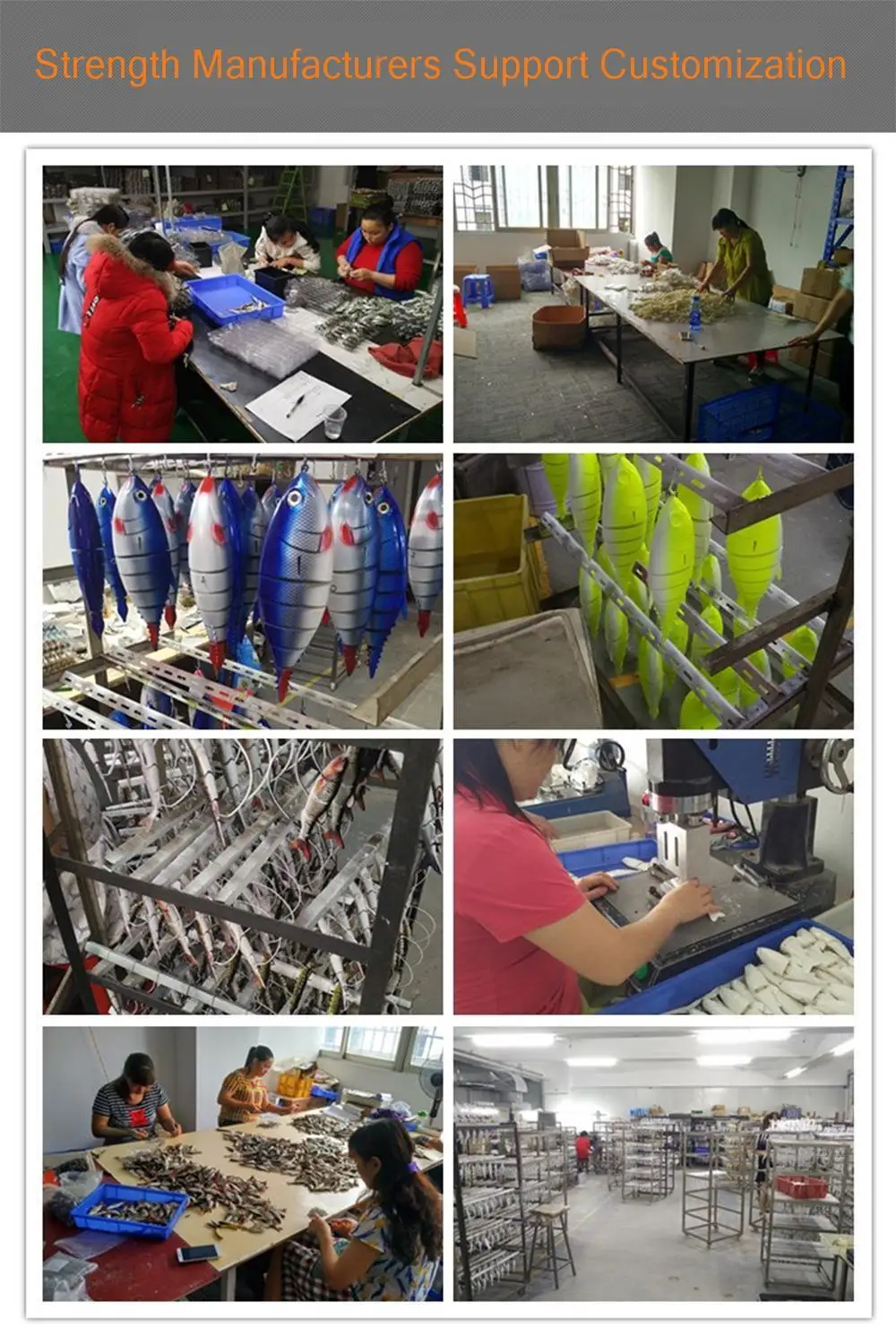 10. El proceso de acabado de bordes y desbarbado de precisión reduce el área rugosa de los señuelos a una superficie lisa.