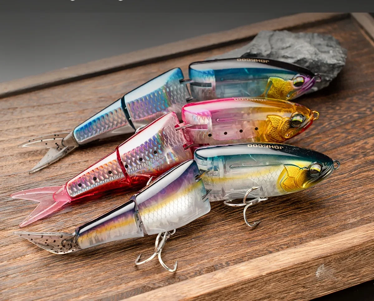 • Diseño articulado flotante del cuerpo duro :El cuerpo duro flotante articulado diseño de este swimbait asegura que se mantiene a flote en el agua, por lo que es perfecto para la captura de peces que nadan cerca de la superficie.