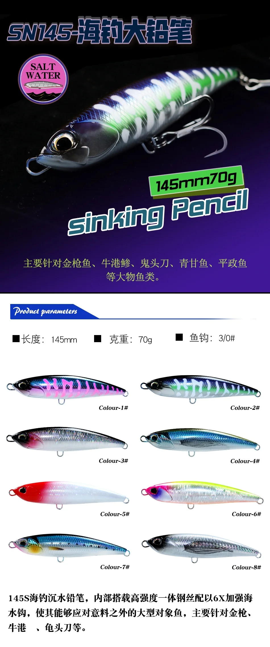 Swolfy, 1 unidad, 14,5 cm, 70g, aparejos de Pesca hundidos, señuelo tipo lápiz, Pesca, agua salada, cebo duro de agua dulce, cebo Artificial de buceo profundo