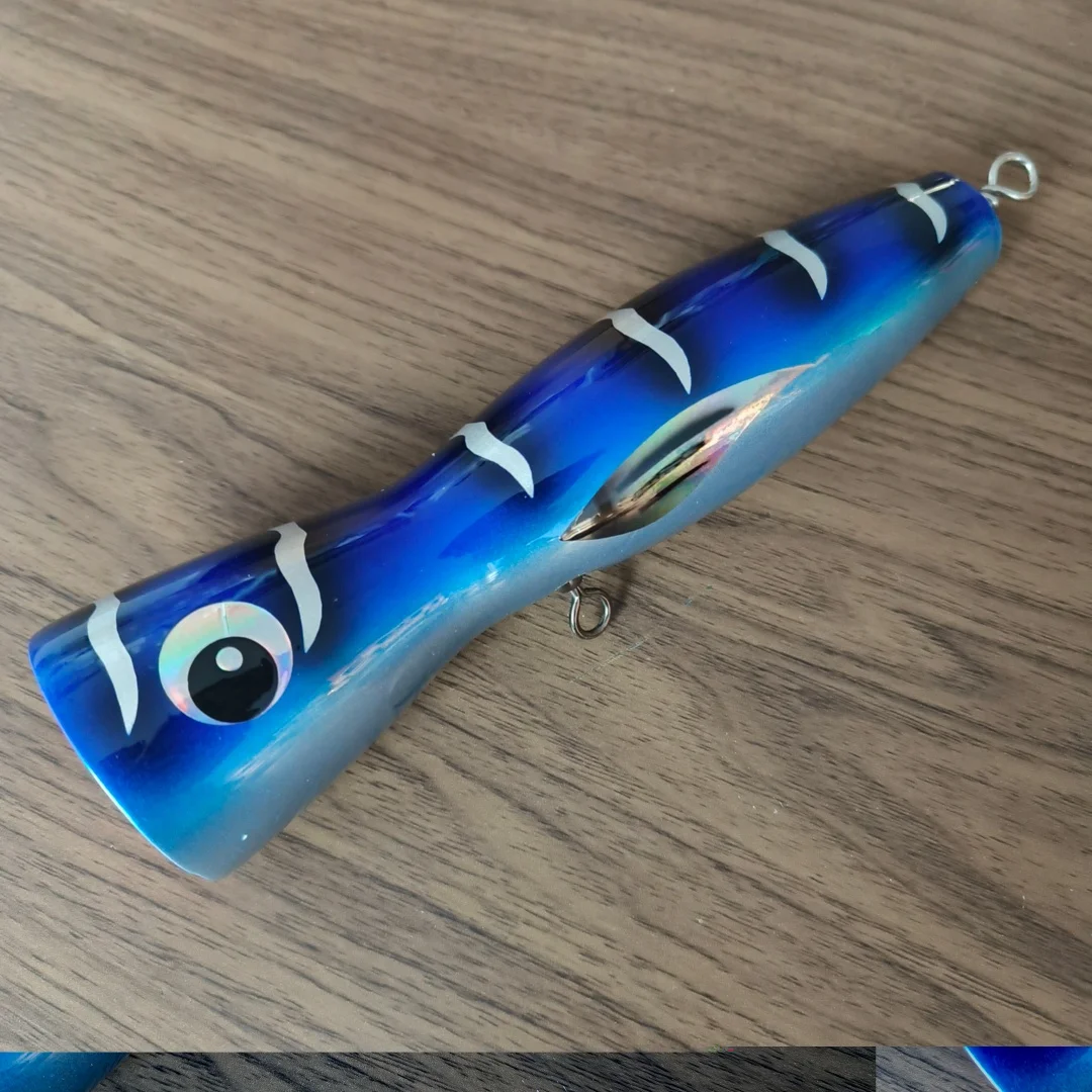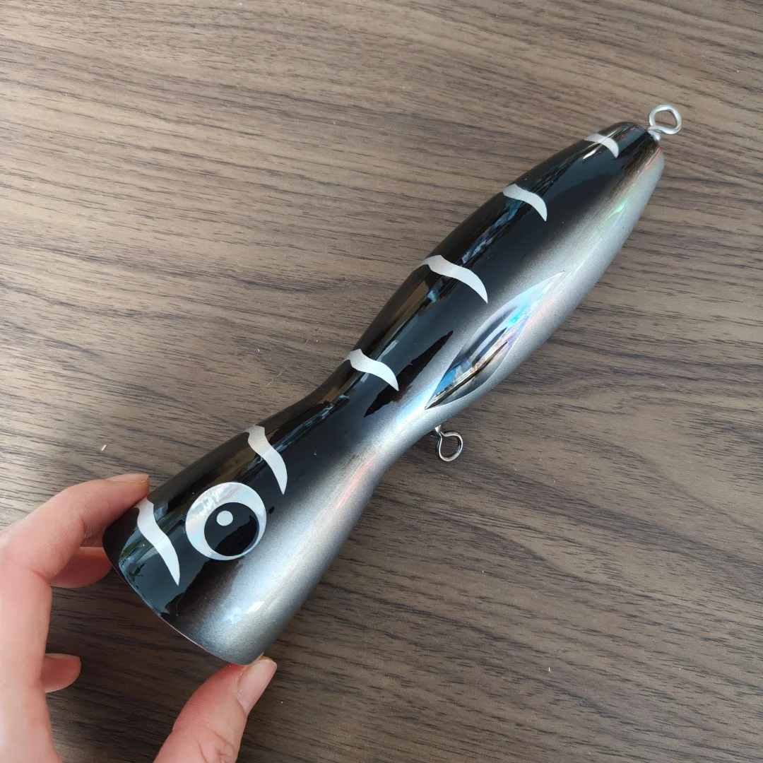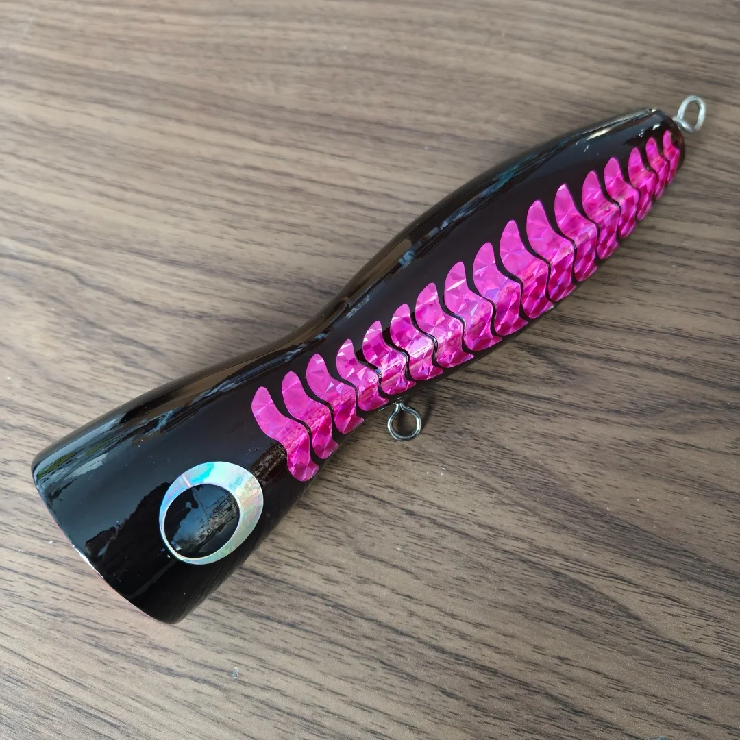 Swolfy, 1 unidad, 19cm, 121g, cebo Popper de madera Topwater, señuelo emergente de superficie, pesca en barco de aguas profundas, señuelos de arrastre Popper de madera