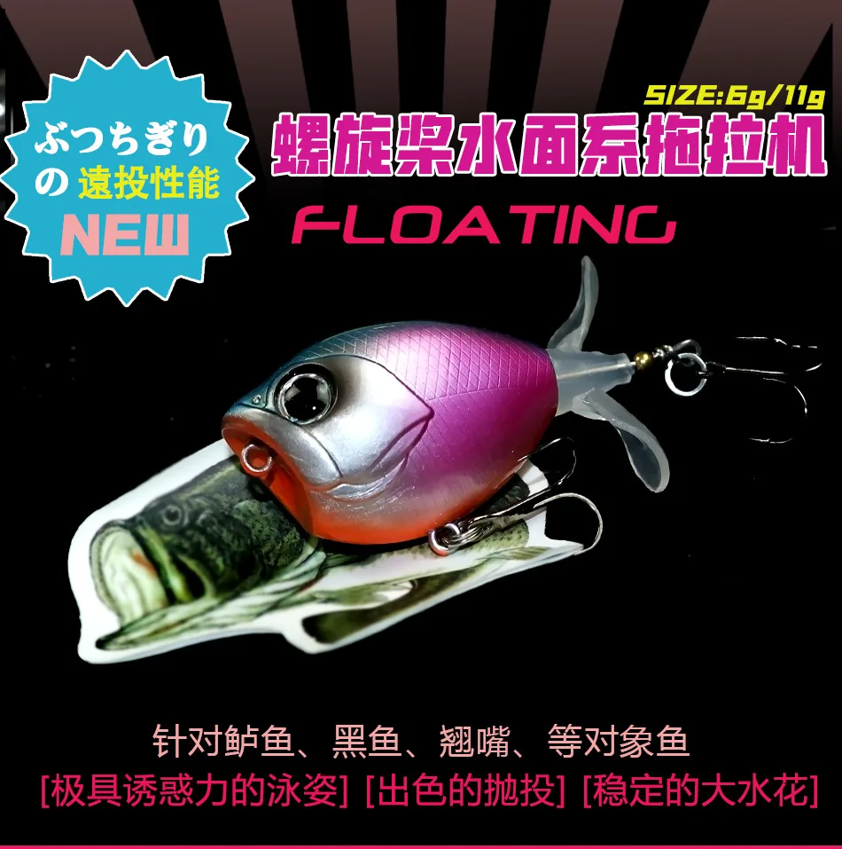 Swolfy, 1 unidad, 50mm/6g, 60mm/11g, señuelo Popper flotante, hélice giratoria superior, cebos duros para lubina, accesorios de pesca de pescado negro
