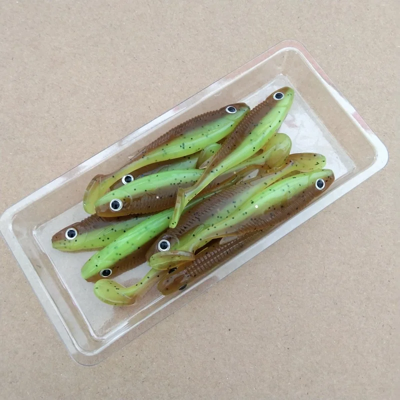 Swolfy, 10 Uds., 65mm/2,8g, pequeños peces reales, cola en T, cebos blandos, señuelo 3D, ojo de pez, Wobblers artificiales, juego de pesca Swimbait de silicona