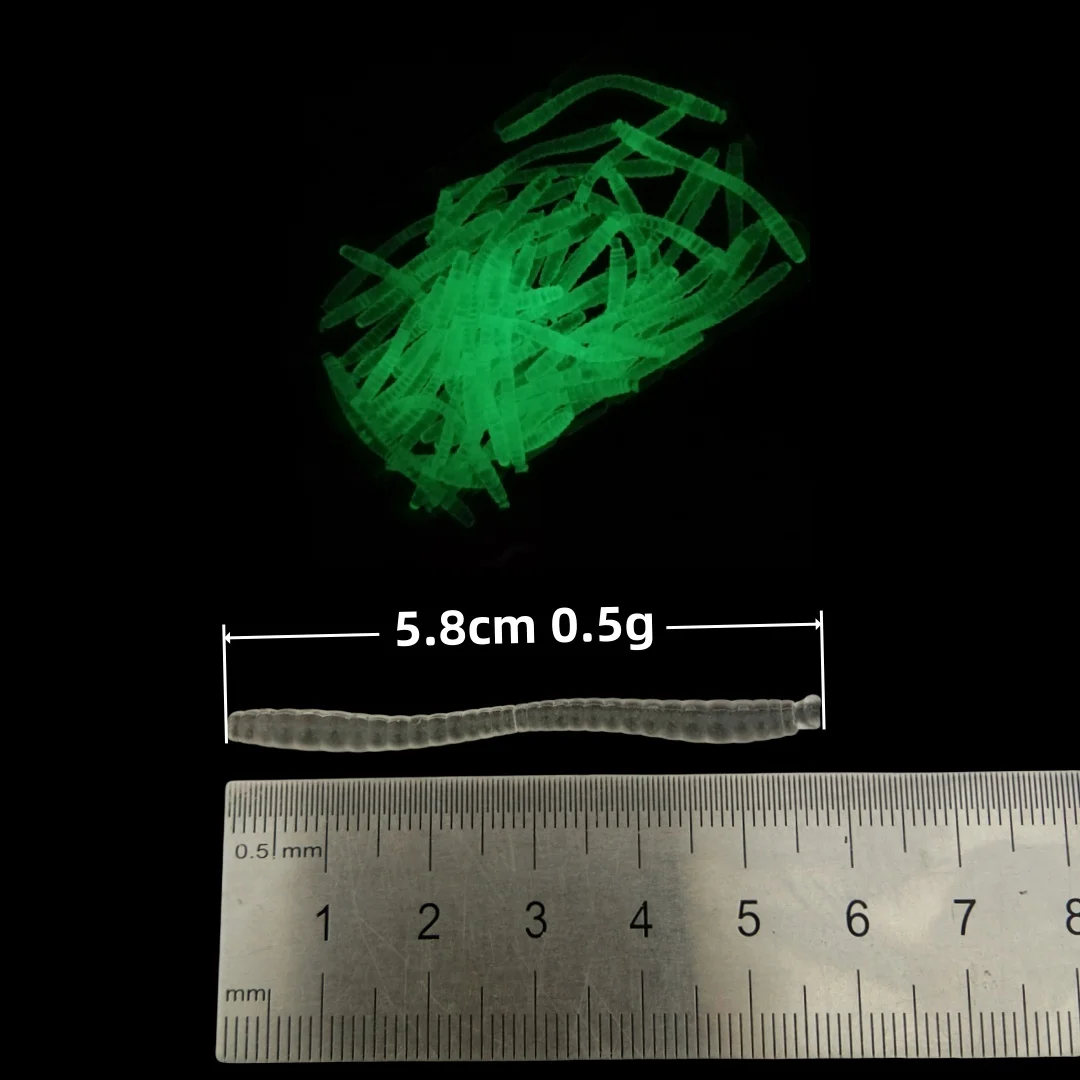 Swolfy 20 unids/pack 5,8 cm 0,5g señuelo de pesca luminoso de PVC cebo de lombriz aparejos de pesca brillantes accesorios de pesca