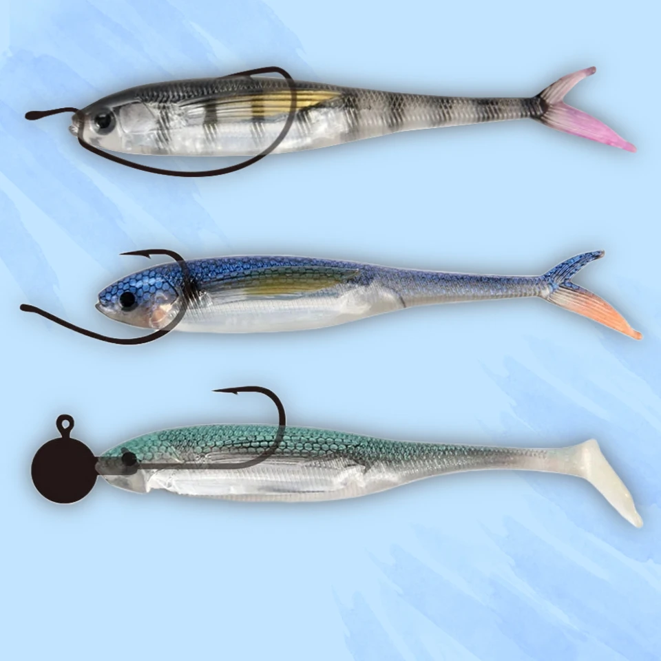 SWOLFY, 3 uds., cebos de silicona, cola de paleta, sábalo, gusano, cebo suave realista, 9g, 12,5 cm, Swimbaits de agua dulce, señuelo de pesca de lubina y trucha