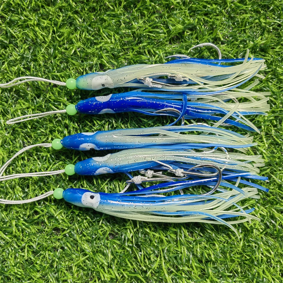 SWOLFY 5 uds señuelo anzuelos de Pesca brillo pulpo faldas de calamar Inchiku Jig lento rápido Jigging Metal caída cebo Pesca aparejos de asistencia
