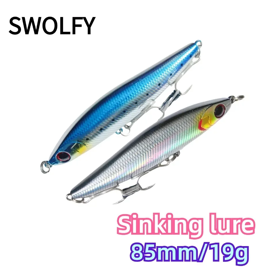 SWOLFY-cebo de lápiz que se hunde, Wobbler, 19G, transferencia de peso, Swimbait, Cast Minnow, aparejos de silicona, señuelo de Pesca, 8,5 cm