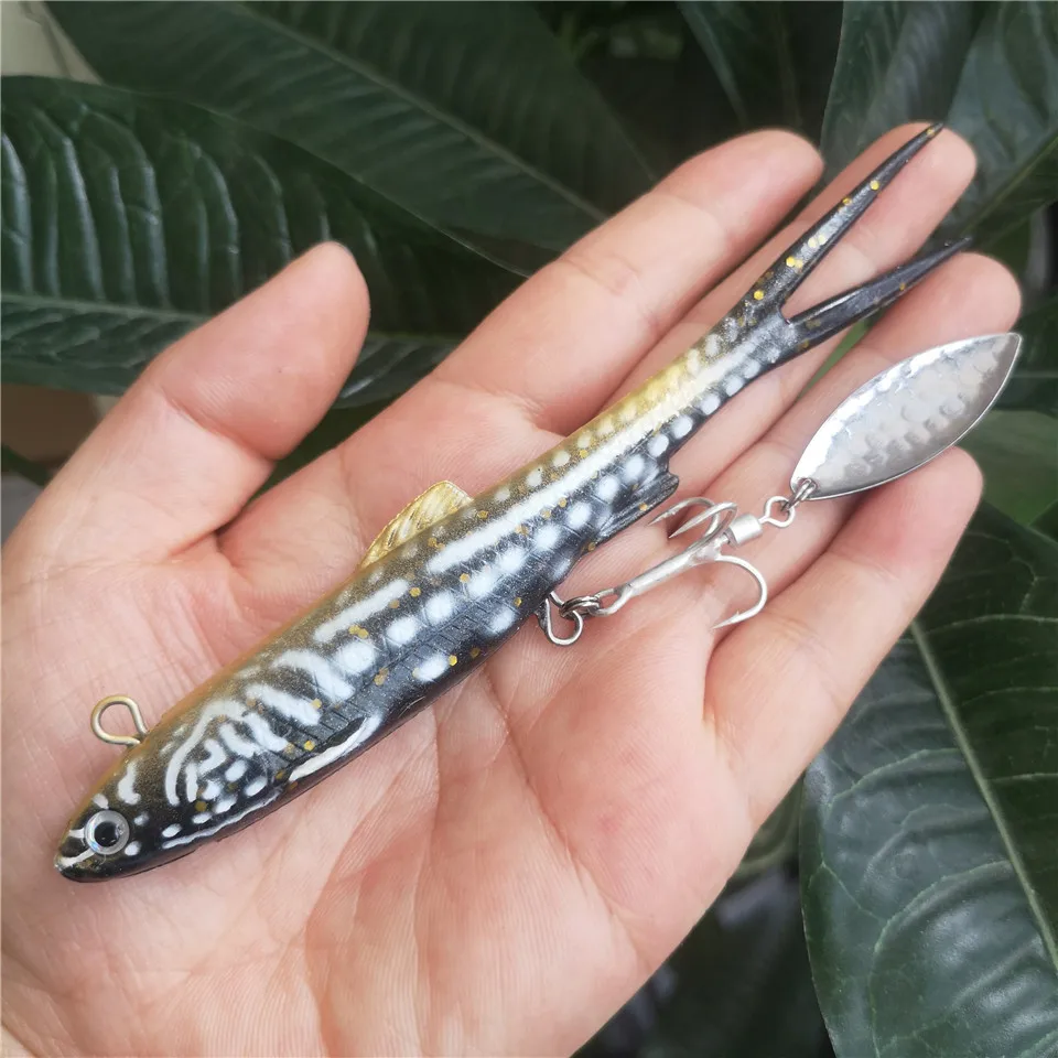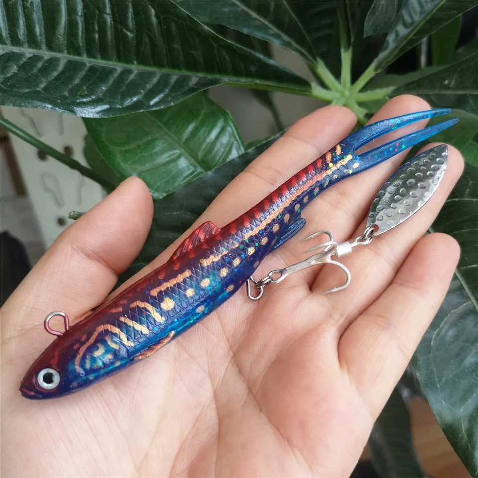 SWOLFY-Cebo Multicolor Luya, bolsa de cola de horquilla, pez de plomo, 14cm/28g, pesca en el mar, equipo de pesca al aire libre, cebo suave de simulación