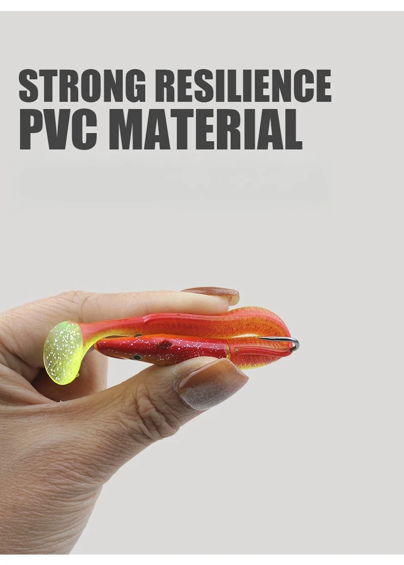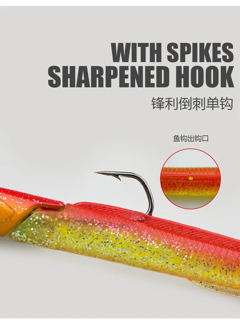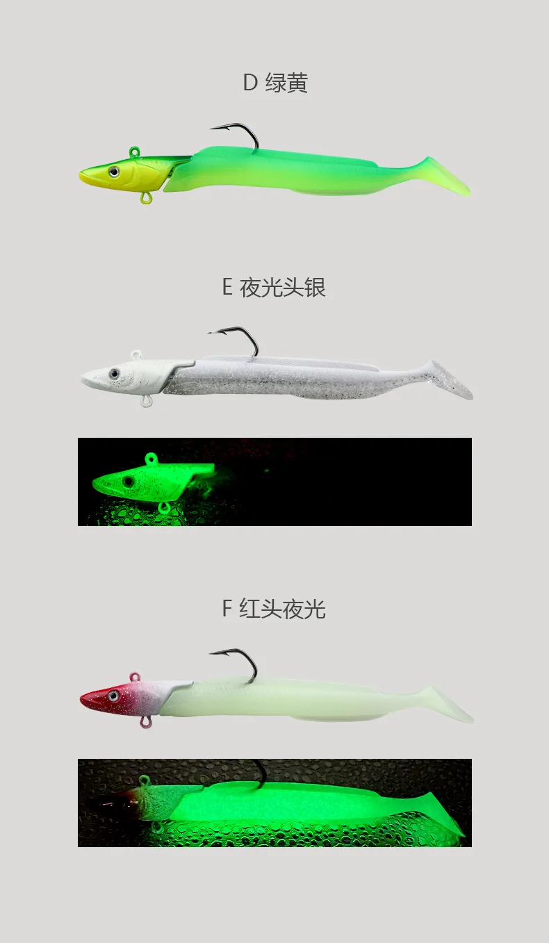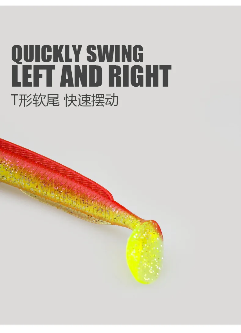 SWOLFY-Juego de señuelos blandos para pesca, cola en T luminosa, 12cm, 23g, cabeza de plomo de hundimiento lento, cebo de simulación Artificial para lubina/Trou
