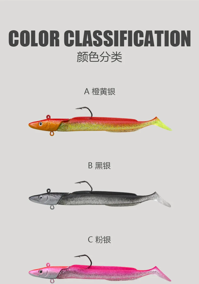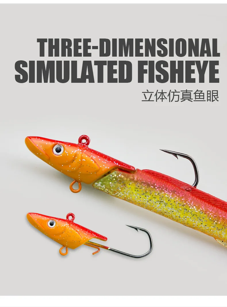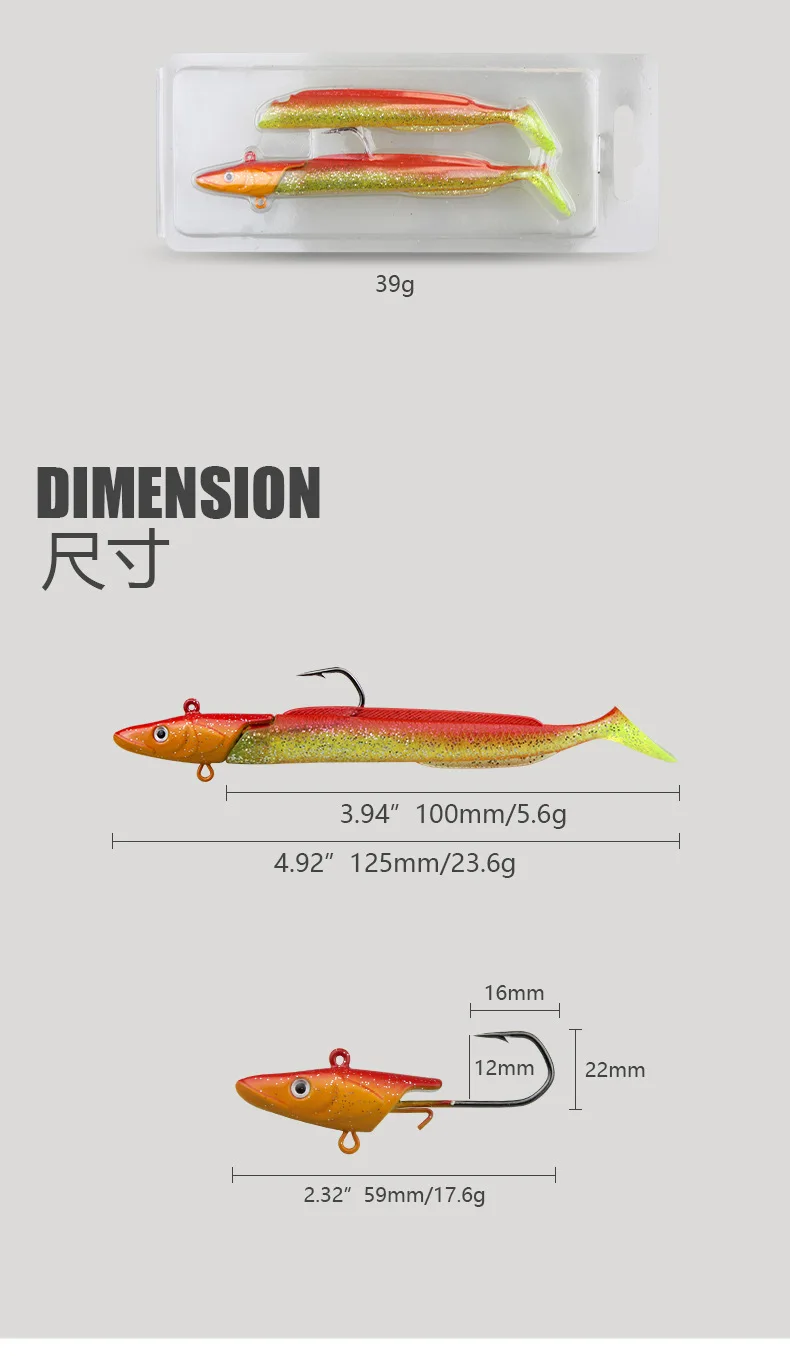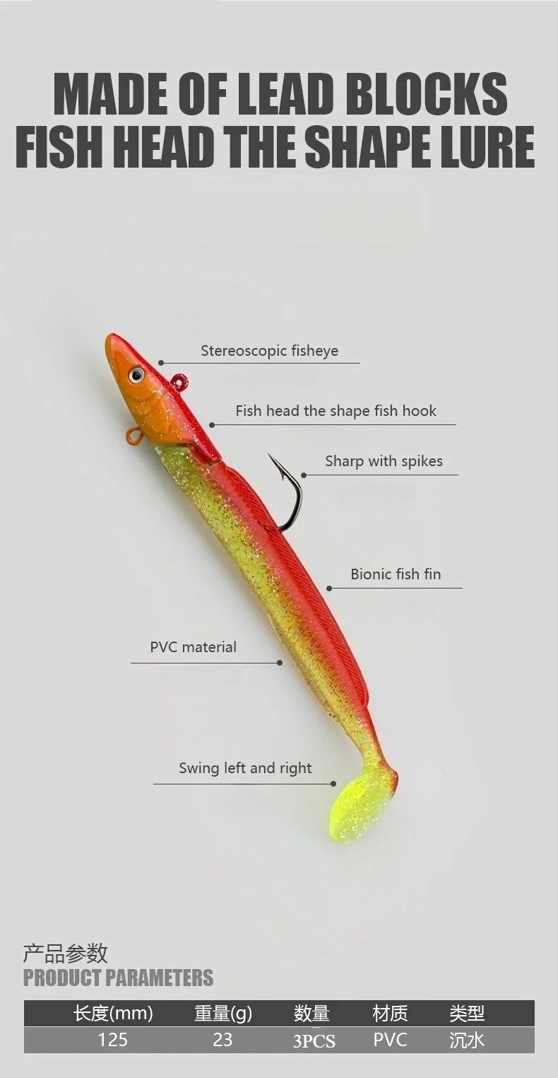 SWOLFY-Juego de señuelos blandos para pesca, cola en T luminosa, 12cm, 23g, cabeza de plomo de hundimiento lento, cebo de simulación Artificial para lubina/Trou