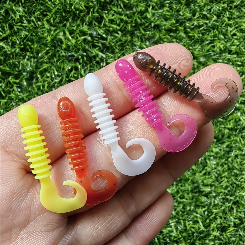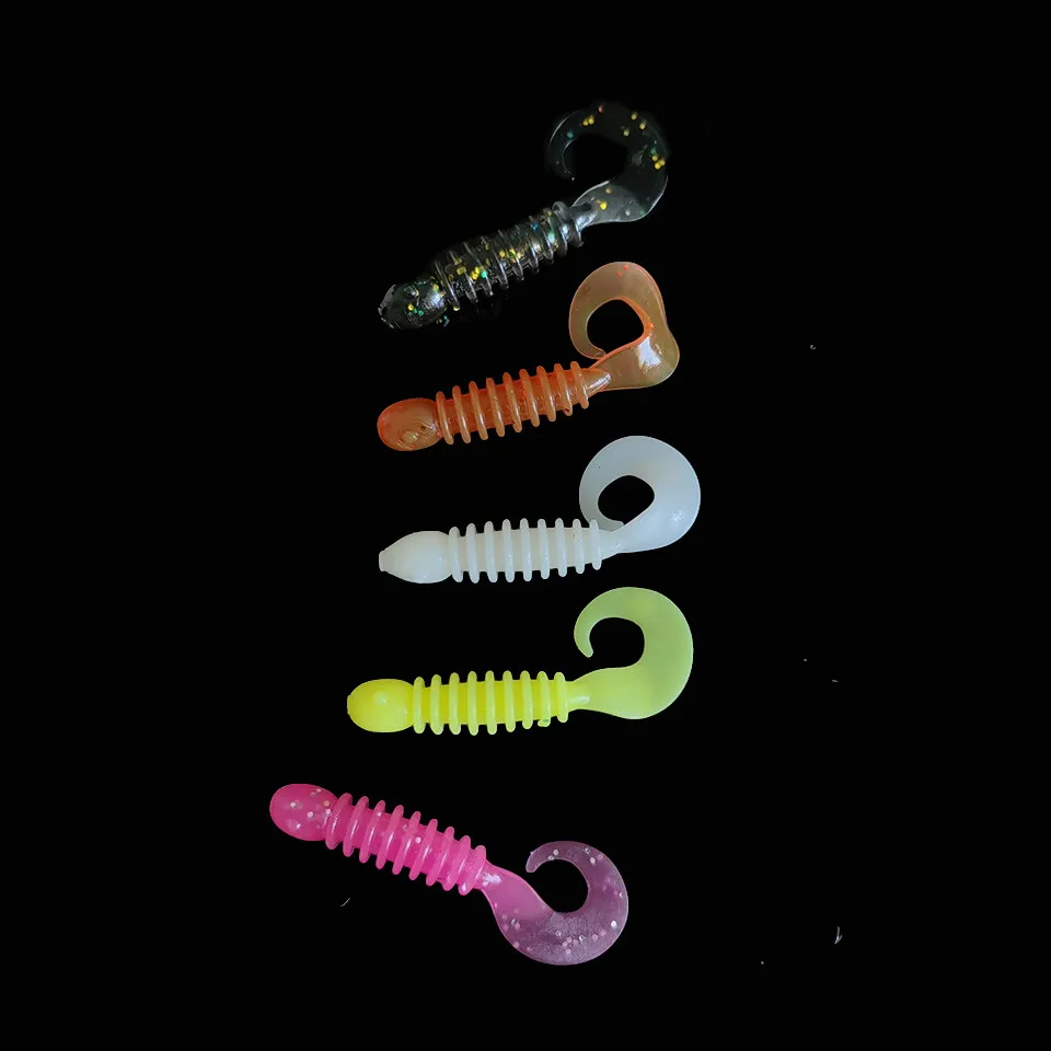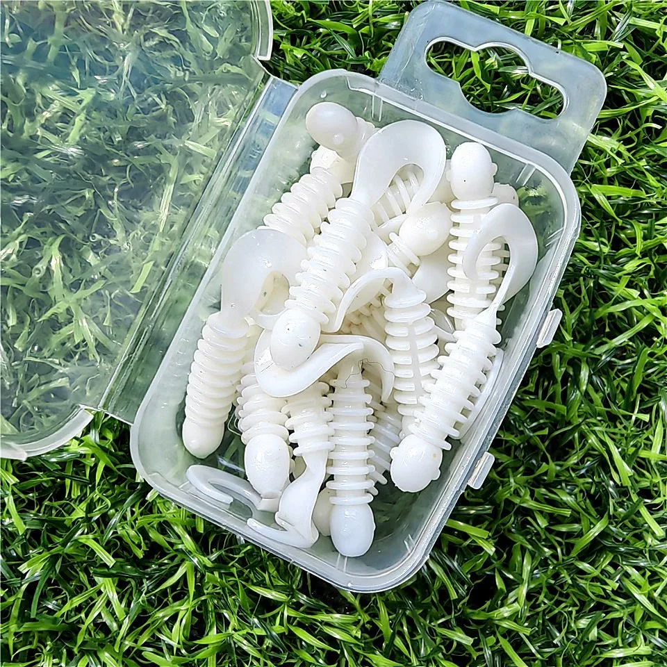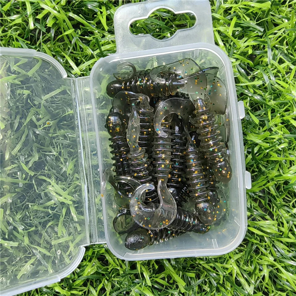 SWOLFY-Juego de Señuelos de Pesca de cola suave, gusano Grub, Swimbaits, cebos de silicona, aparejos de Pesca de lubina, carpa, cebo de silicona, 20 unids/lote por caja