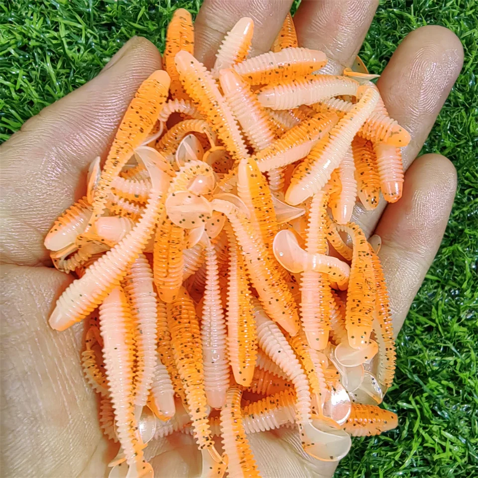 Swolfy-Mini señuelo de Pesca suave, 100g/cm 0,37, gusano pequeño Ttail, Wobbler Isca, carpa, aparejos de Pesca artificiales, 3,5 piezas