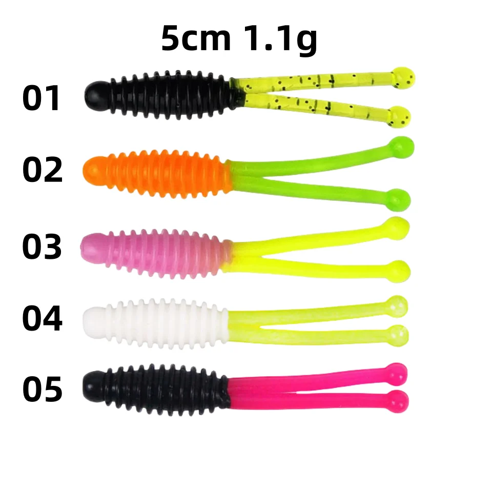SWOLFY-Mini Señuelos de Pesca blandos, 10 piezas, 1,1g/50mm, Jigging de doble cola, Wobblers, Swimbaits artificiales para aparejos de carpa, lubina