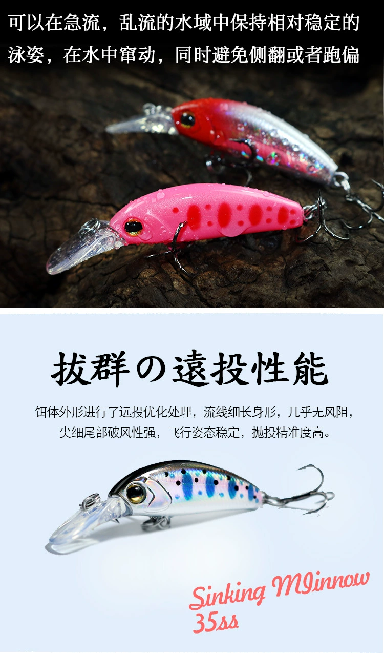 SWOLFY nuevo señuelo de pesca Mini Minnow señuelo 50mm 3,6g cebo duro Artificial con anzuelos de alta calidad Crankbaits