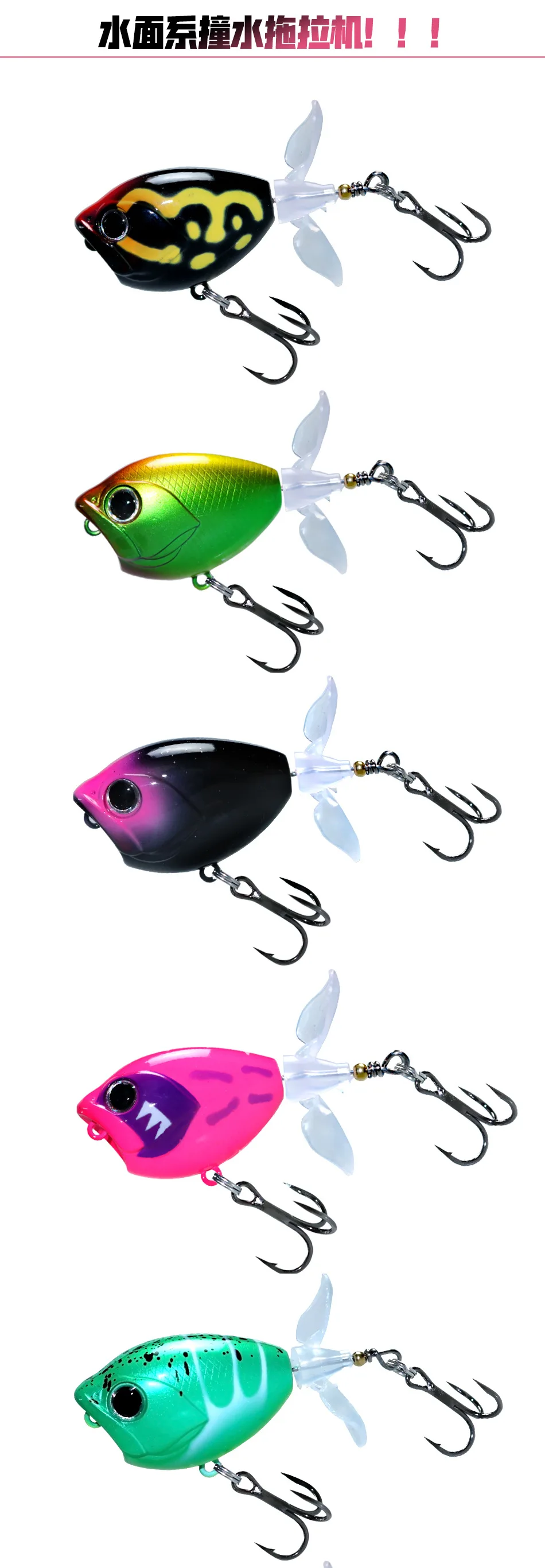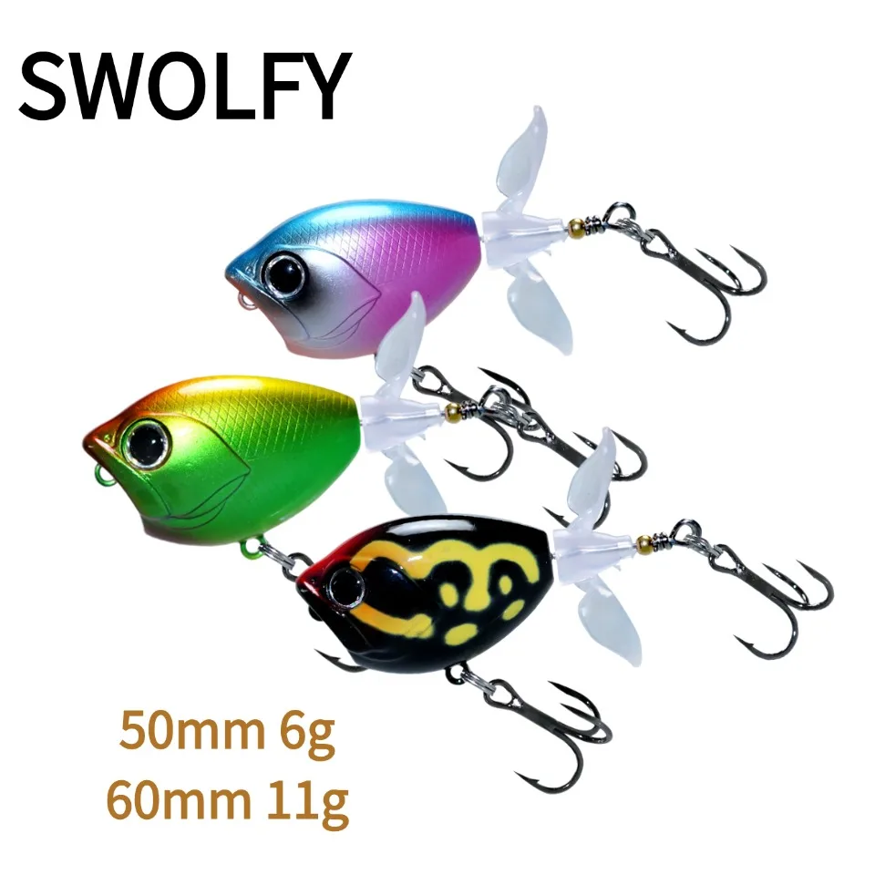 SWOLFY-señuelo flotante Popper, 50mm, 60mm, Topwater hélice giratoria, cebos duros para lubina, pez negro