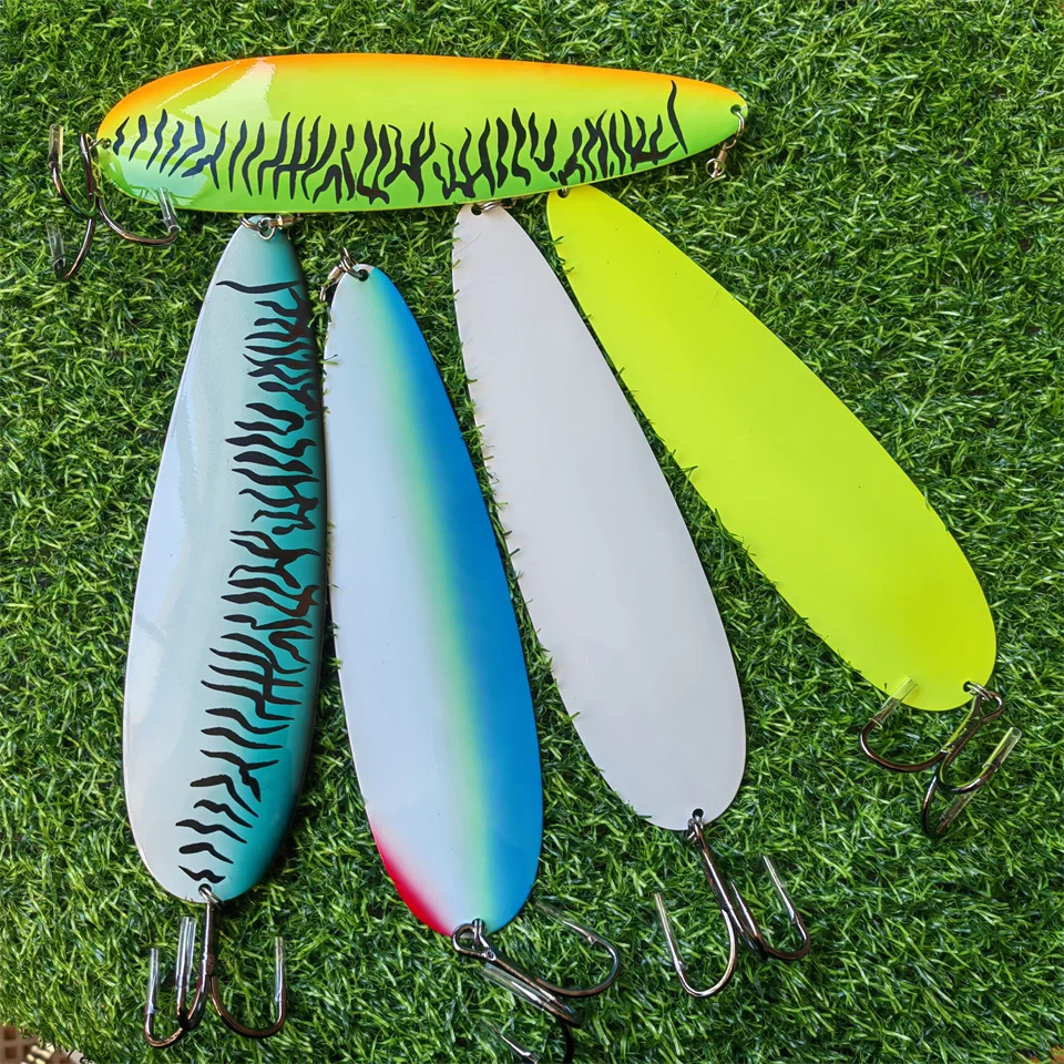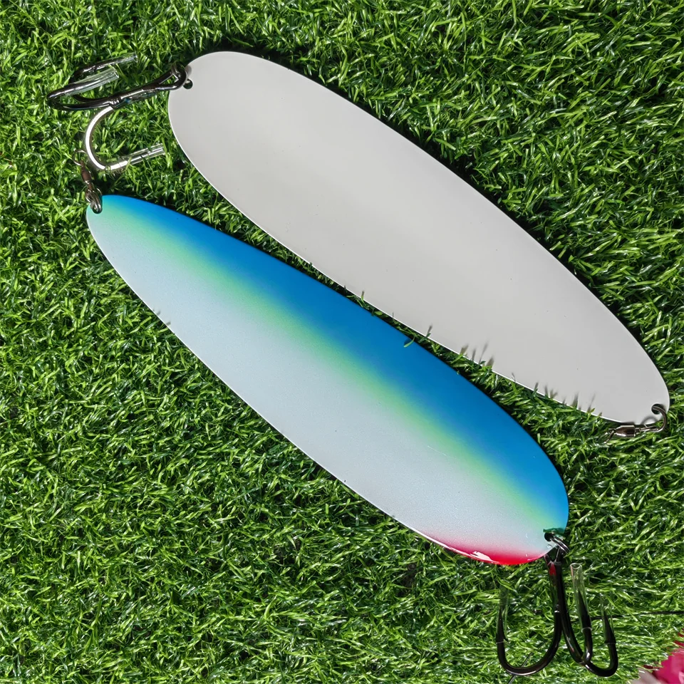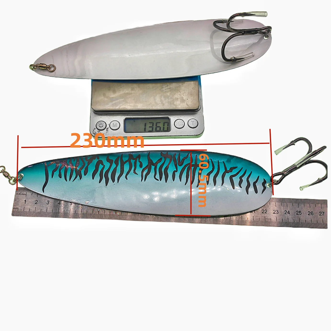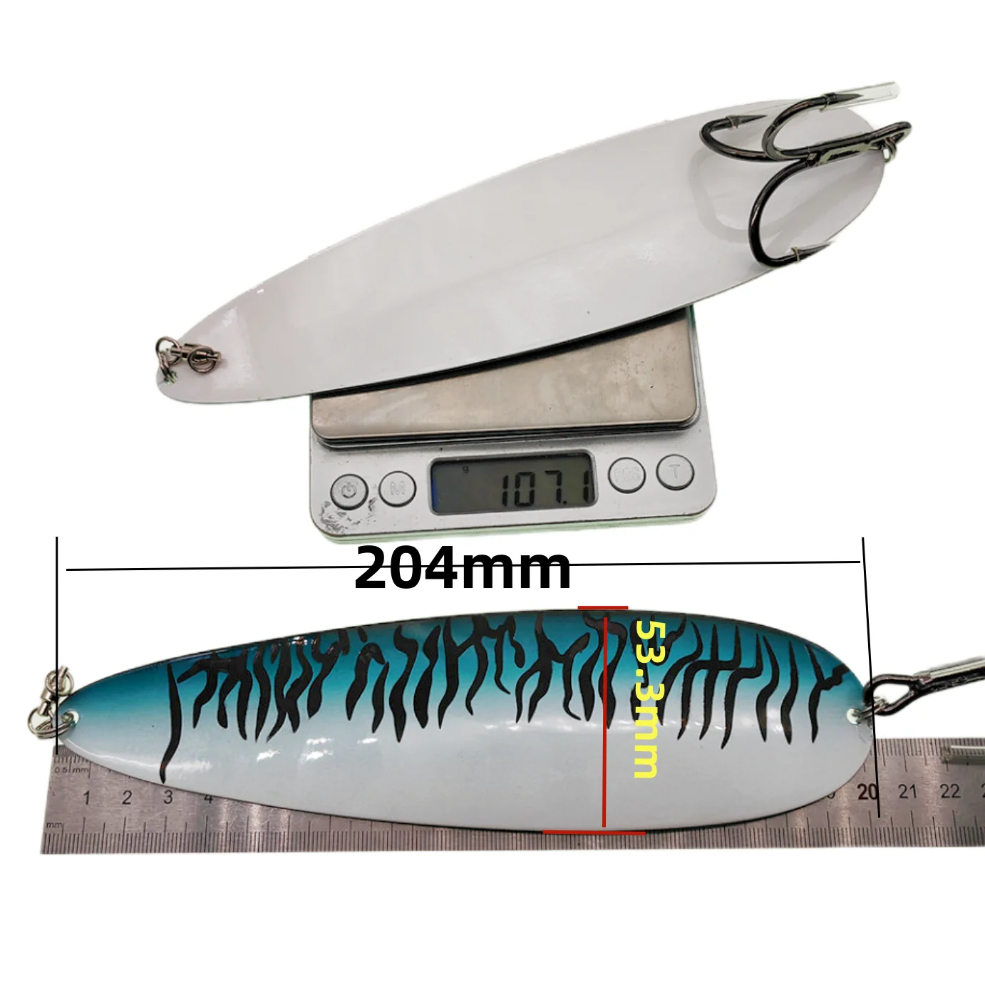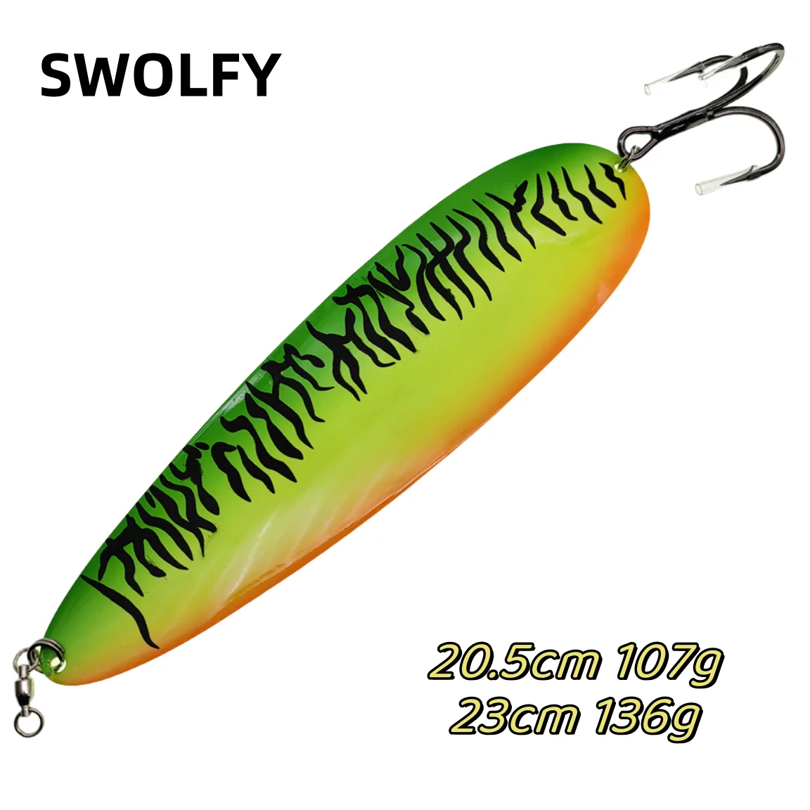 SWOLFY-señuelo giratorio de Metal para pesca, cebo de 107g/204mm, 136g/230mm, cuchara doble grande, Wobbler, Swimbait, Lucio, salmón, 1 unidad