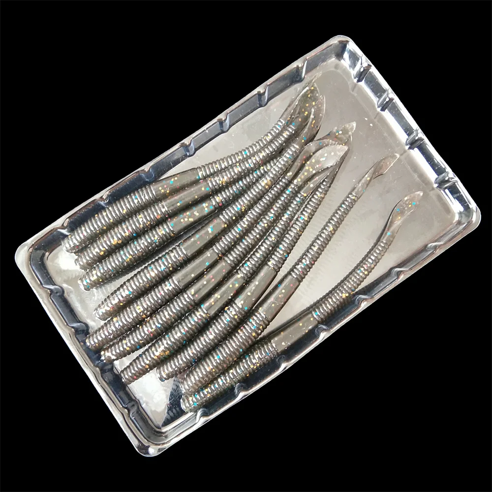 Swolfy-señuelo de gusano para pesca, 70 piezas, Material de PVC suave, Swimbait, 10CM, 2,4g, para bagre, carpa y lubina