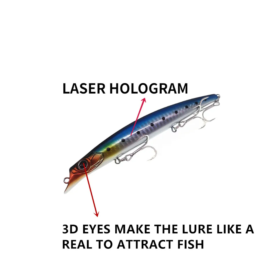 Swolfy-señuelo de pesca de 140mm/18g, anzuelos de cebo biónico duro flotante, pez giratorio de tiro largo