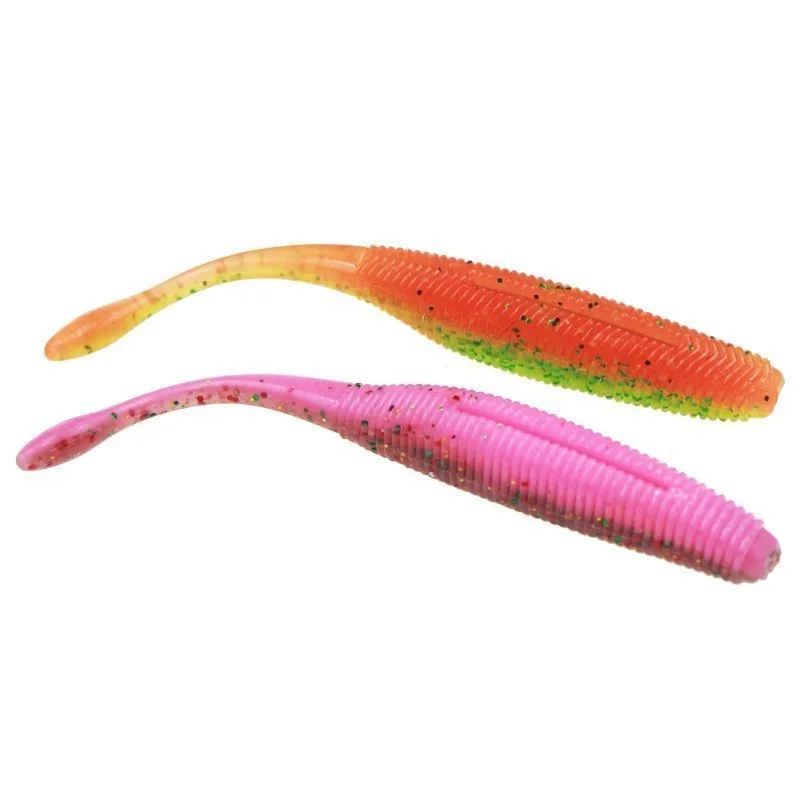 SWOLFY-señuelo de pesca con forma de gusano, cebo blando de 75mm/95mm/115mm, con cola recta de sal, 5 piezas
